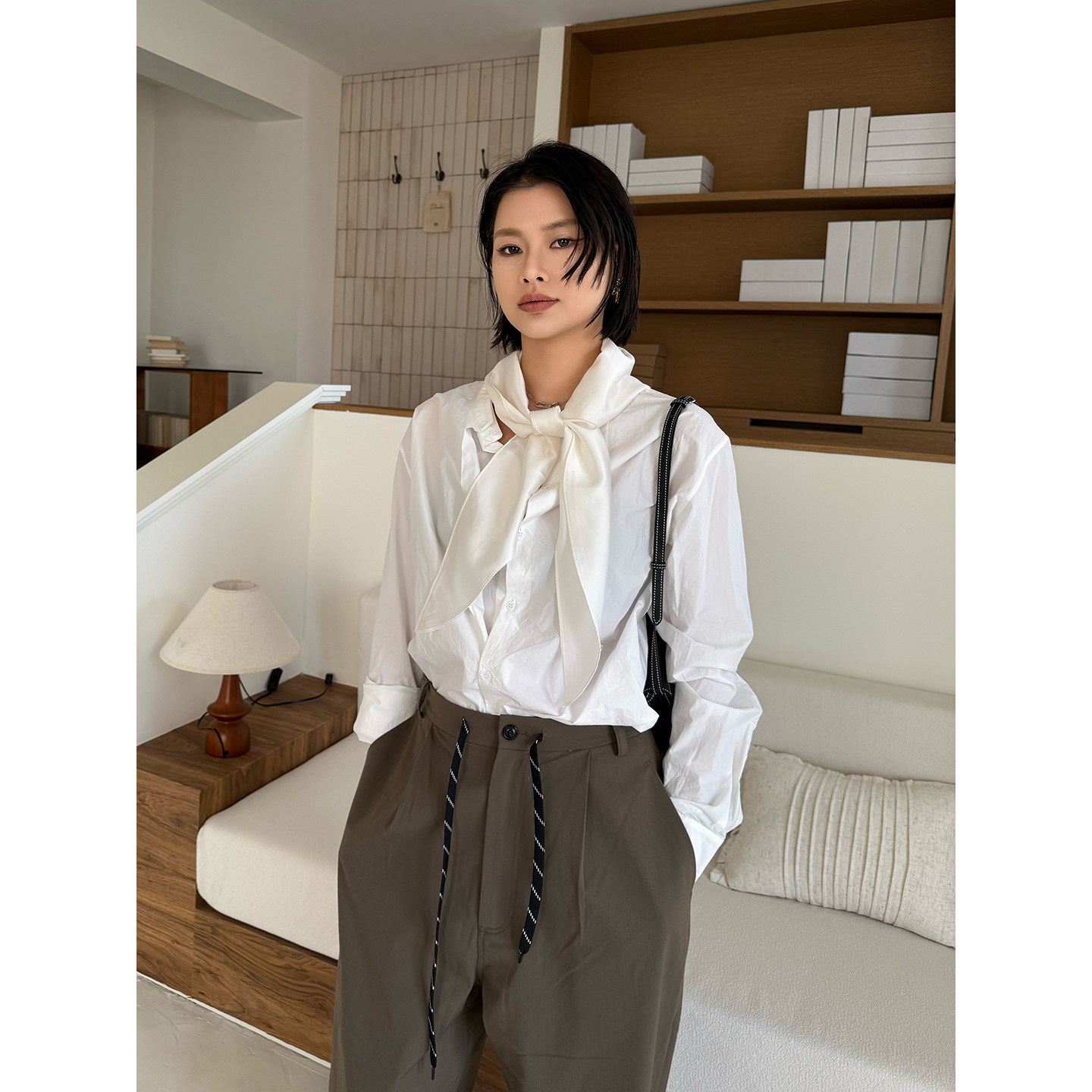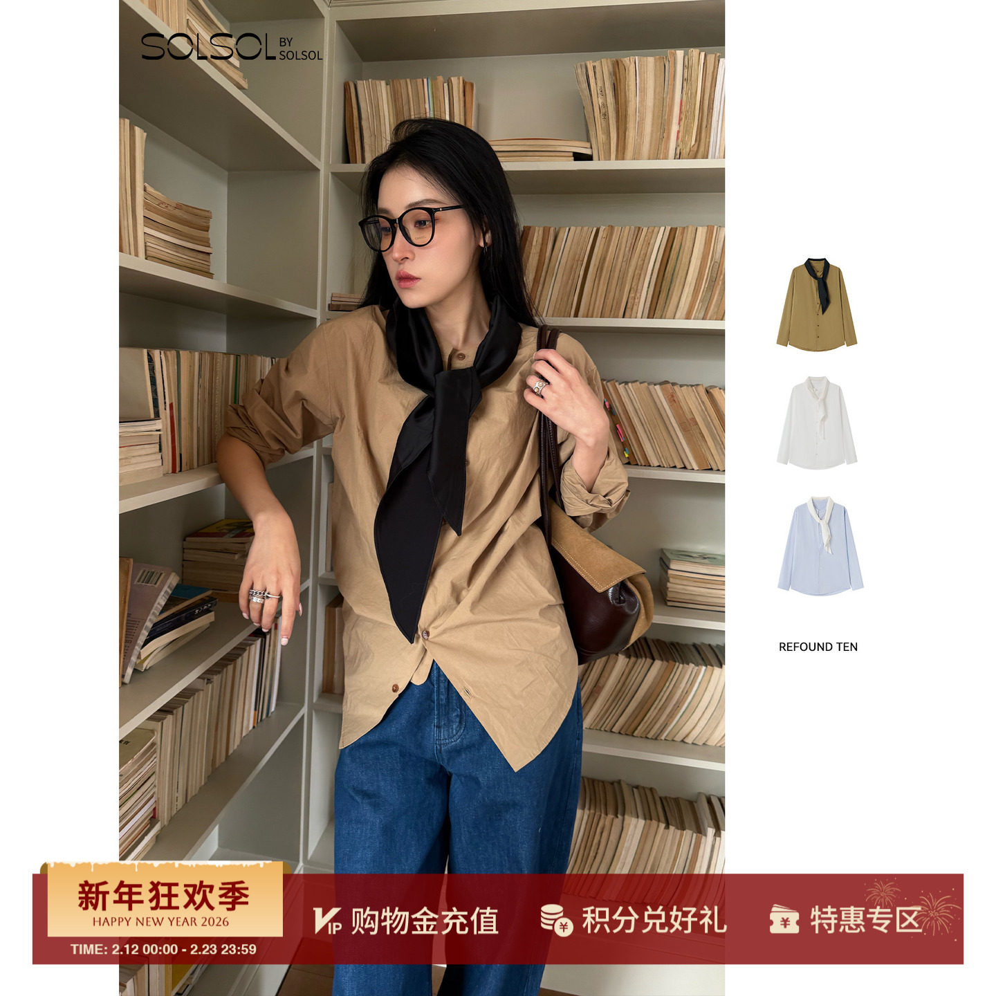 📚 REFOUND TEN 设计师 26春夏新品 丝巾领结匹马棉长袖衬衫 SOLSOL