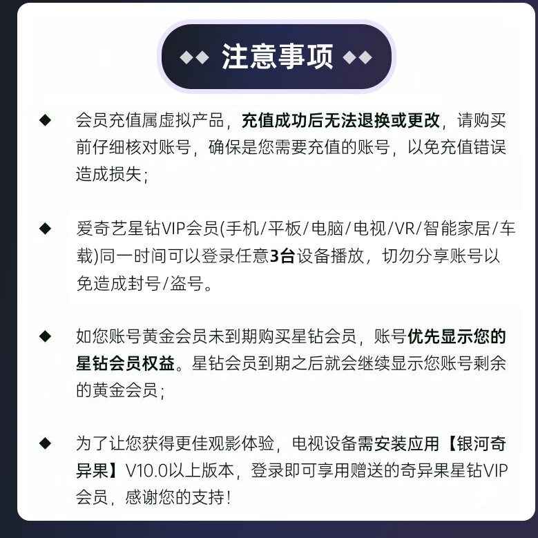 📚 爱奇艺星钻vip会员月卡 1个月 银河奇异果 支持电视TV端 JFJQG