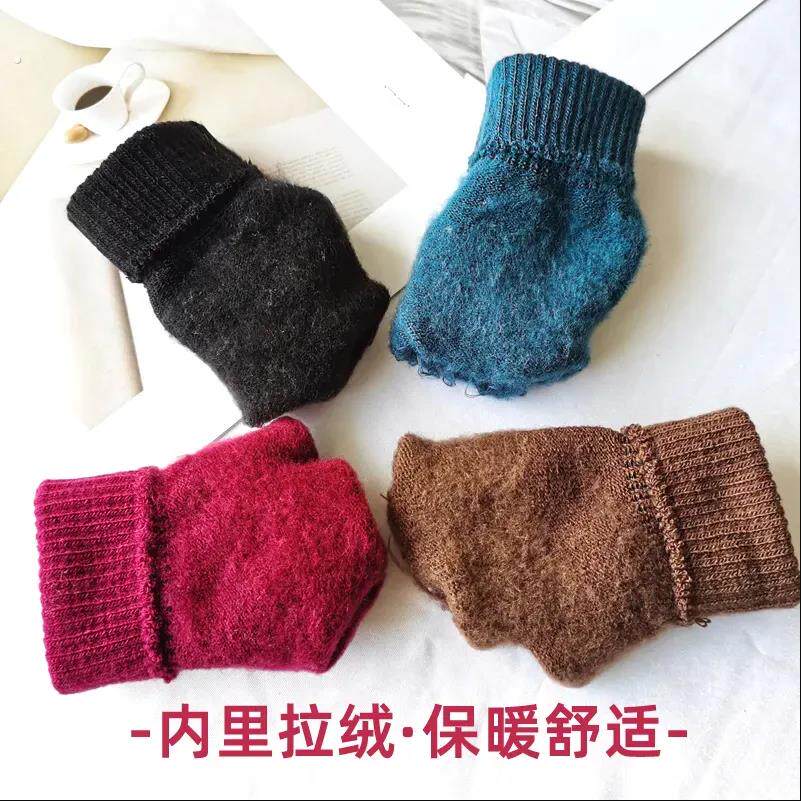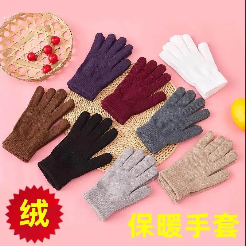 📚 纯色针织手套男女士秋冬季保暖加绒弹力毛线分指学生骑行防寒手套