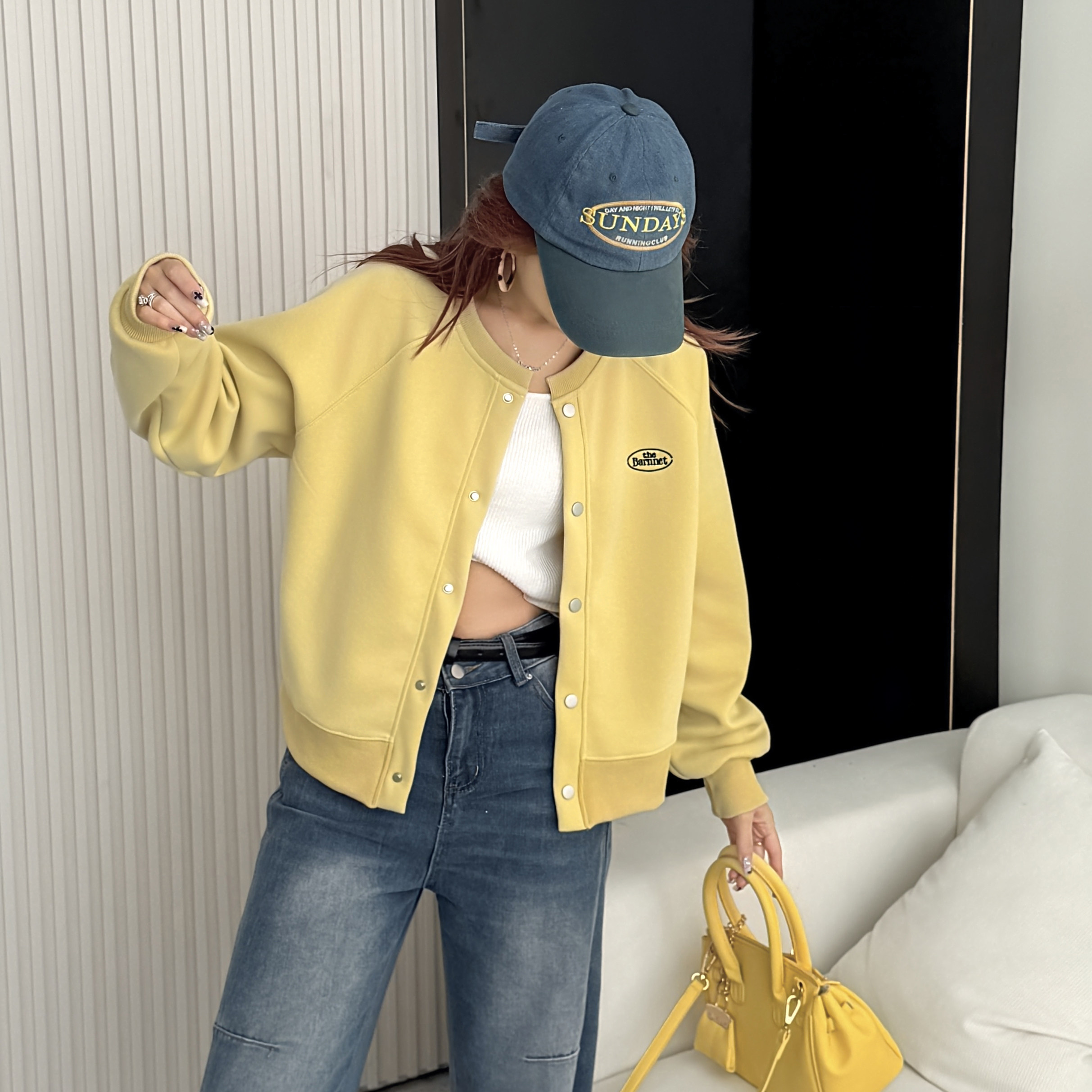 📚 2026春季新款休闲风宽松短款外套女长袖纽扣八奶开衫卫衣棒球服