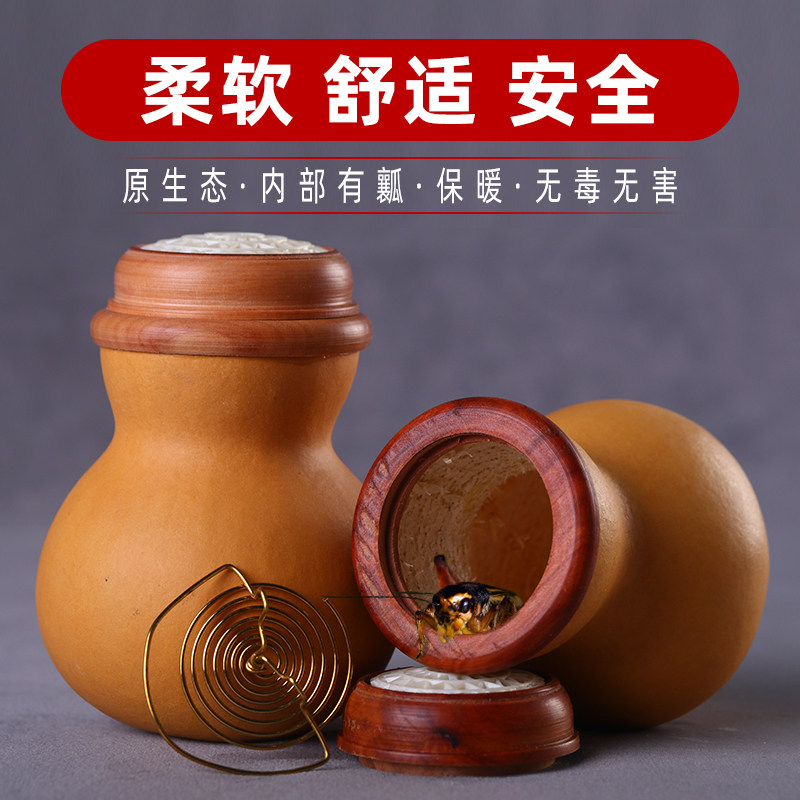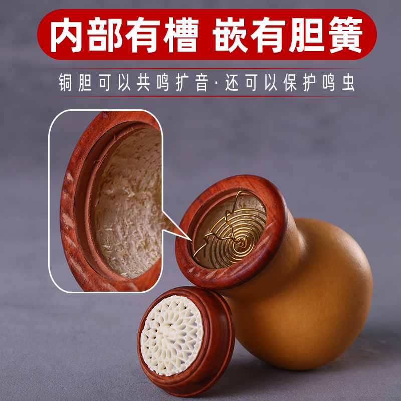 📚 蝈蝈葫芦过冬叫罐笼子高端精品文玩本长蛐蛐虫罐扎嘴有簧口盖蒙心