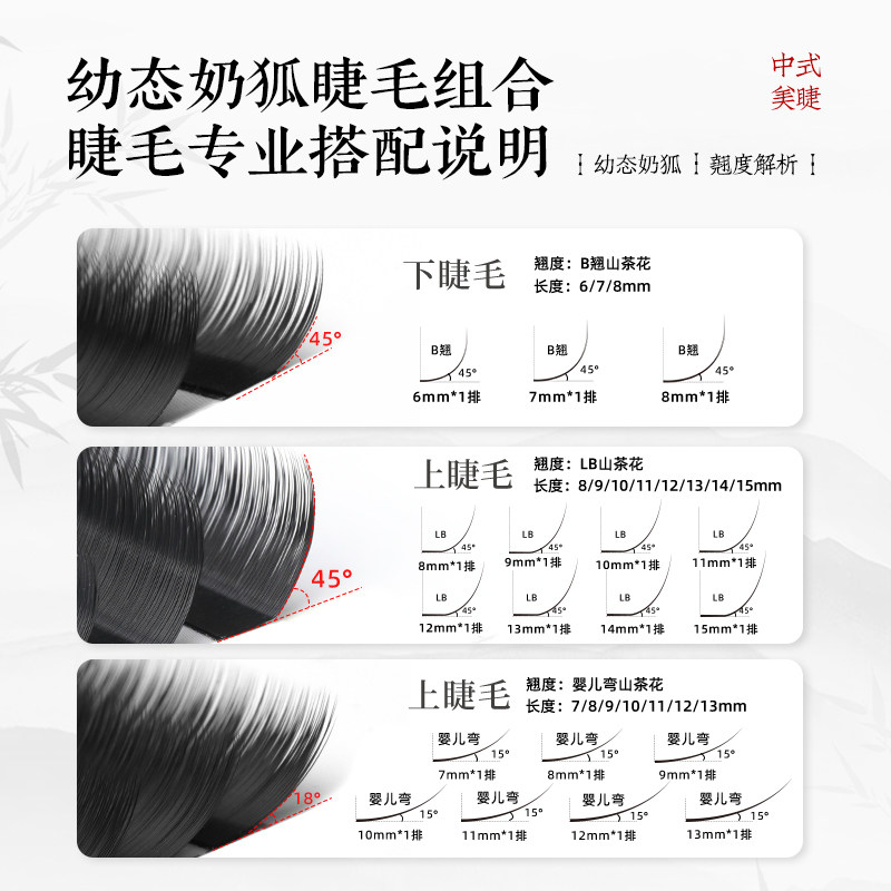 📚 幼态奶狐款套盒 嫁接睫毛LB+婴儿弯山茶花+下睫毛组合 美睫店专用