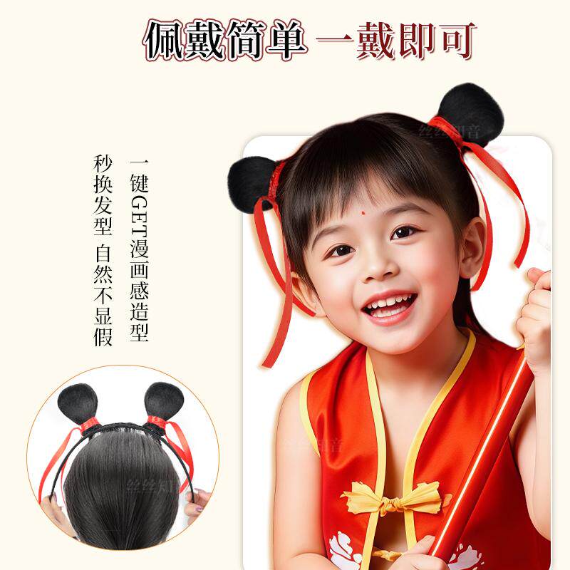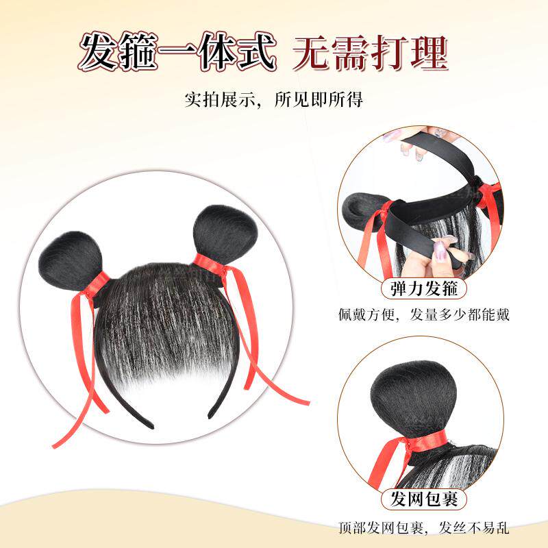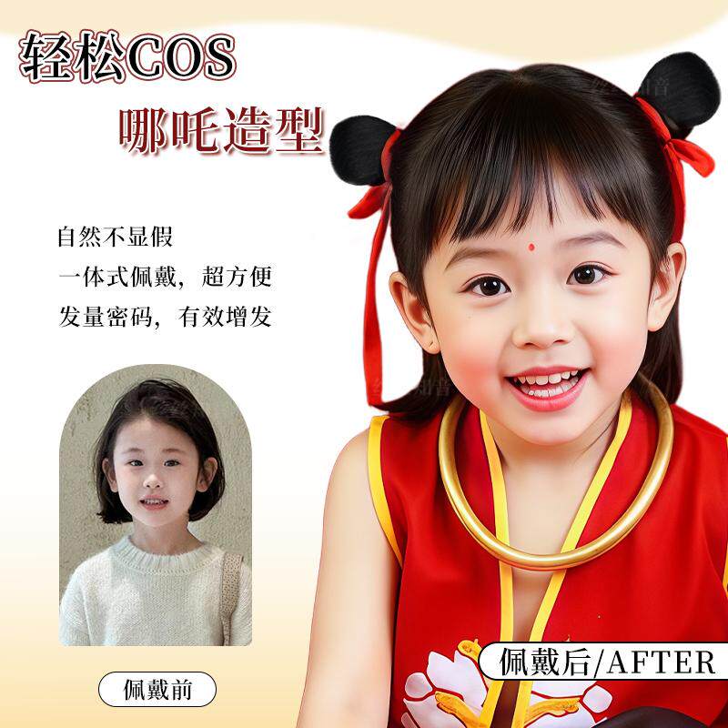 📚 假发发箍丸子头发饰儿童哪吒同款刘海汉服头箍仿真发cos表演古风