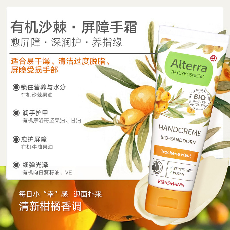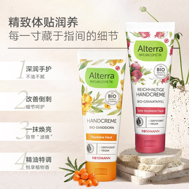 📚 Alterra奥泰拉德国有机纯天然红石榴沙棘修护补水润护手霜75ml/支