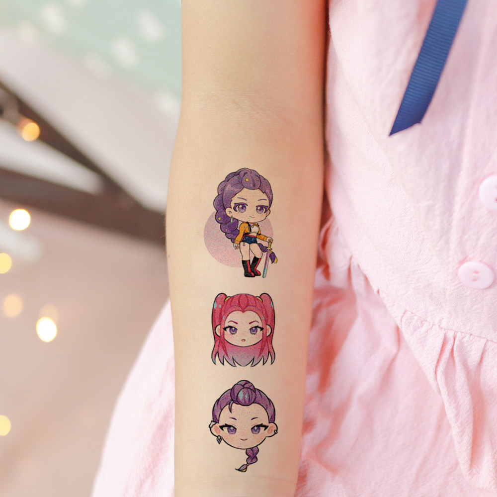 📚 猎魔女团kpop闪粉纹身贴纸卡通Rumi老虎跨境儿童节日礼物脸贴装饰