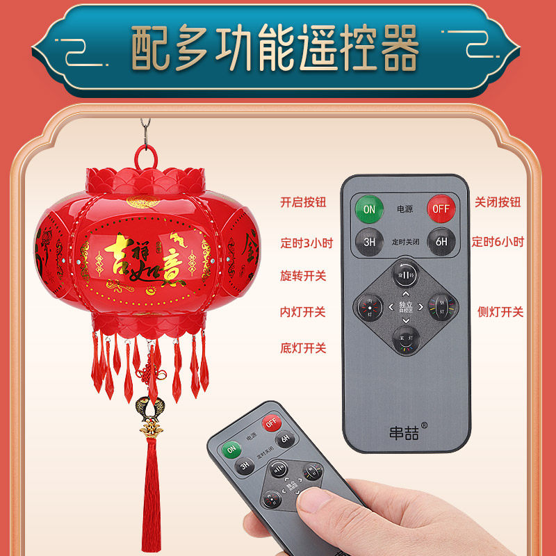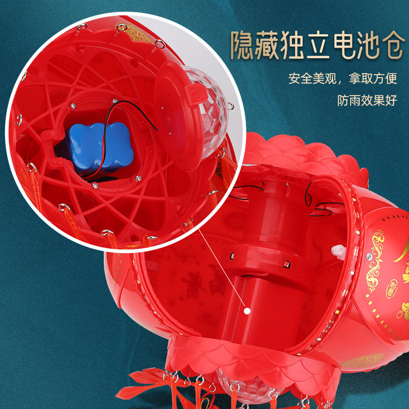 📚 新款充电免接线LED旋转大红灯笼阳台门口户外防水吊灯七彩走煤油