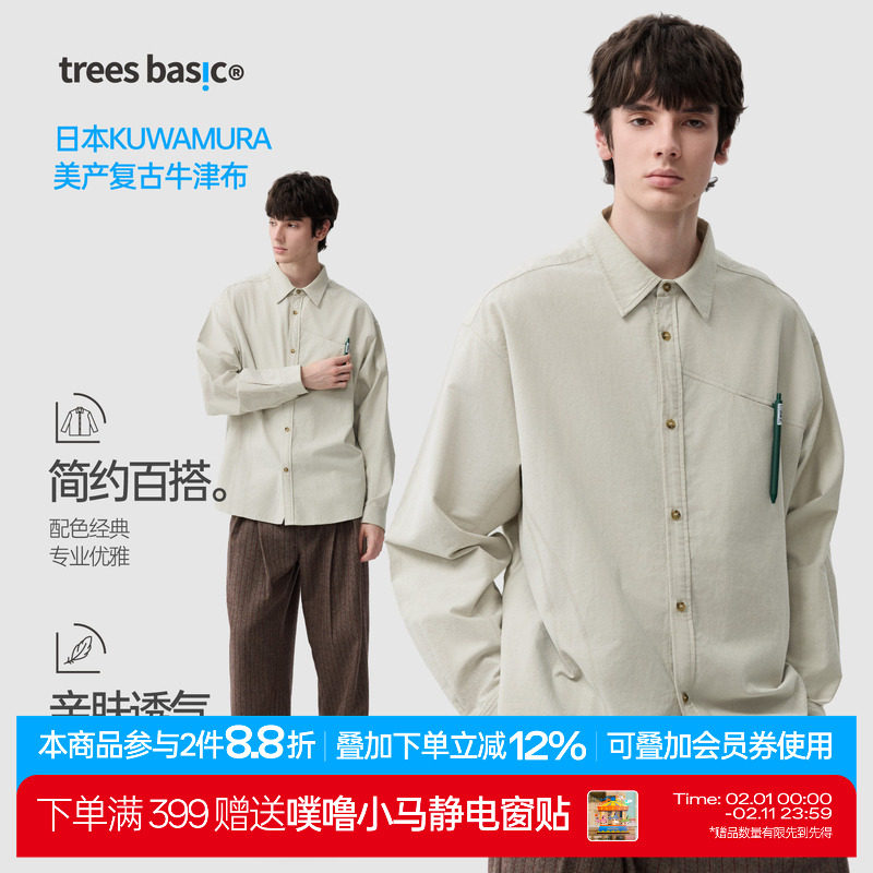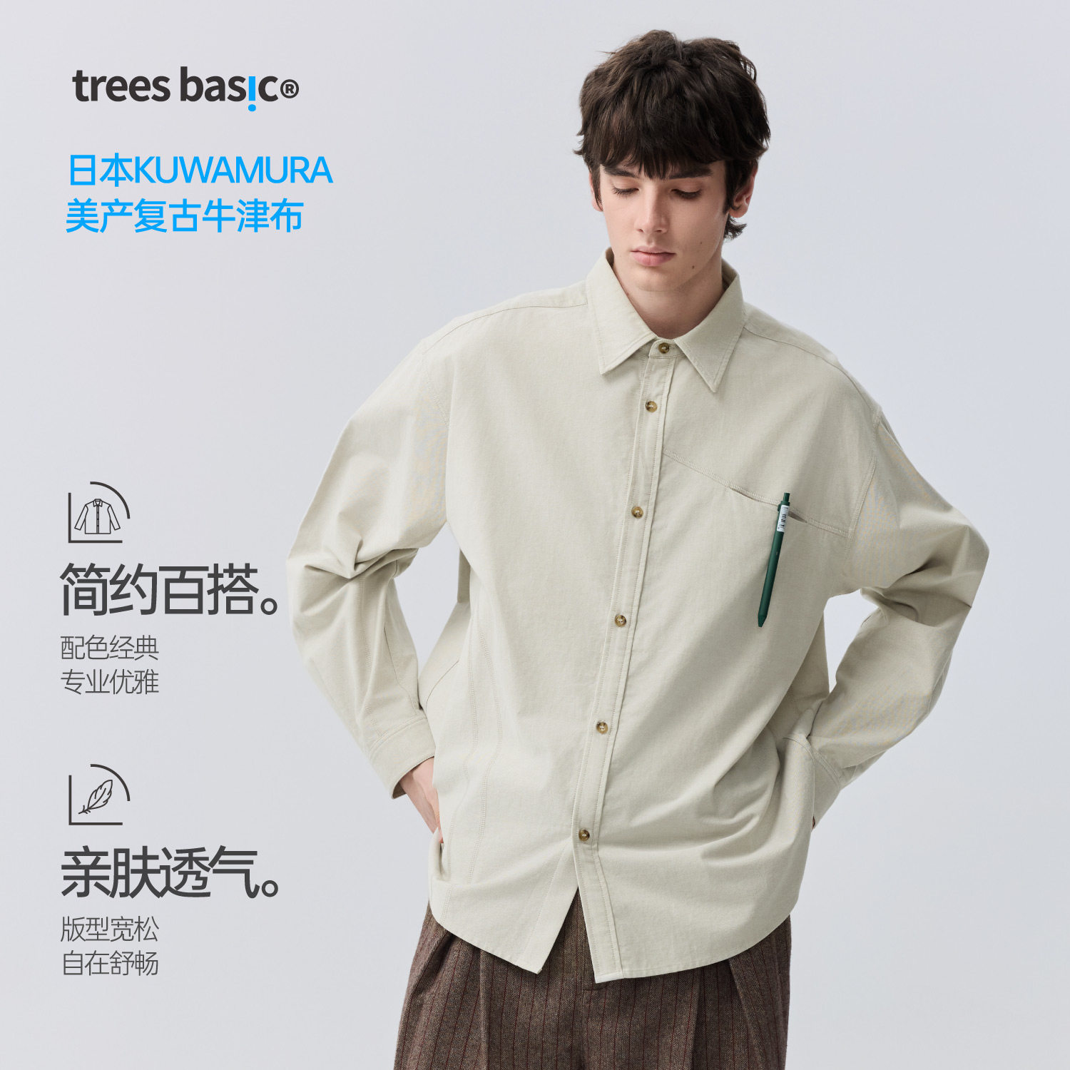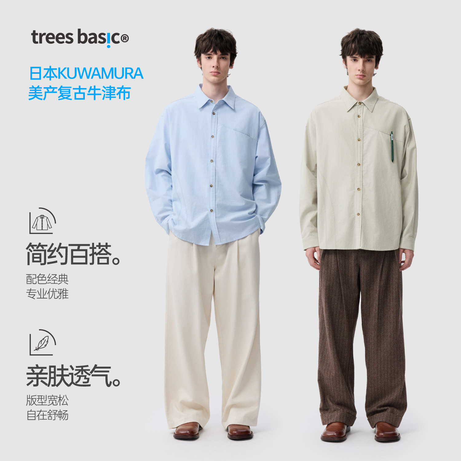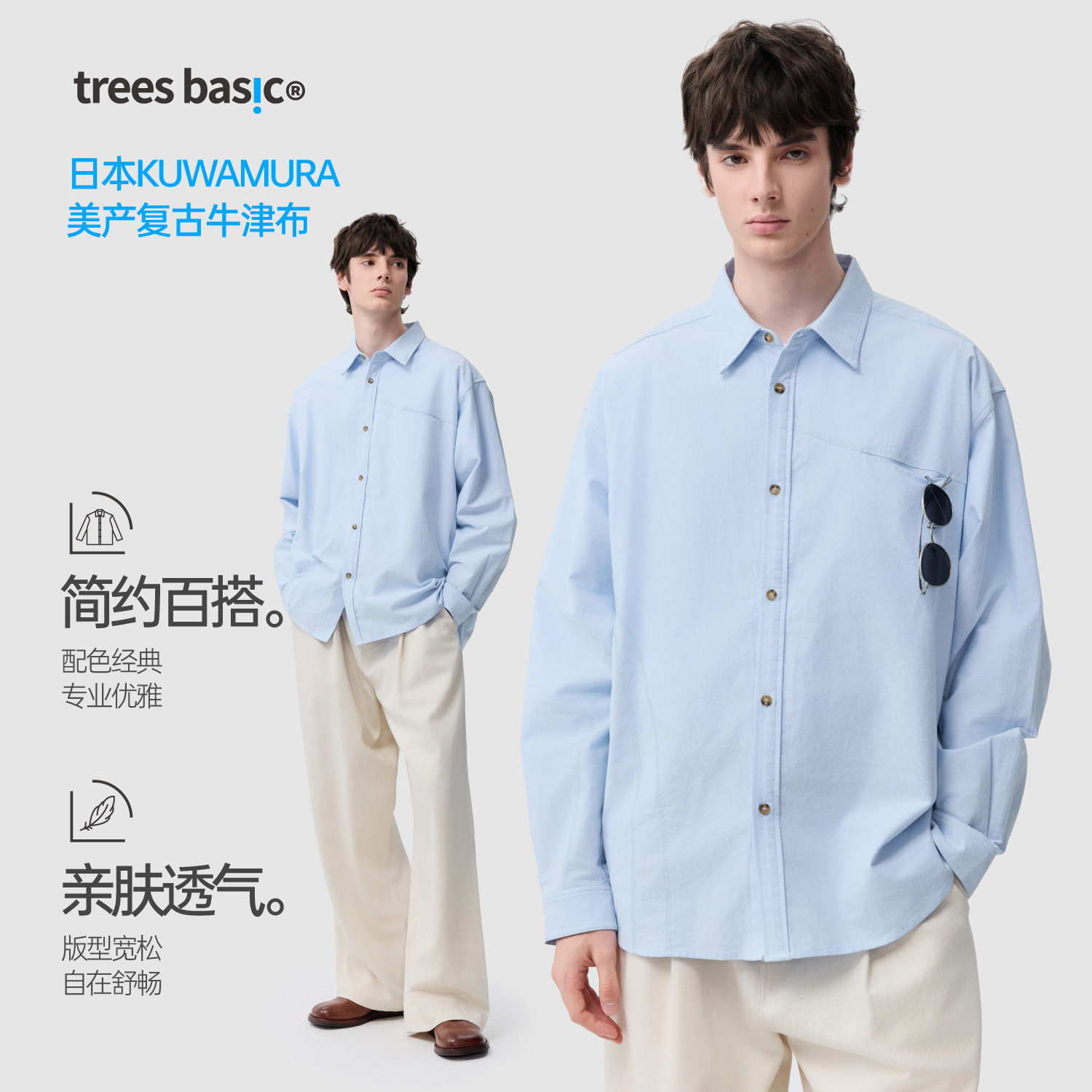 📚 TreesBasic日本KUWAMURA美产复古牛津布弧度分割长袖衬衫