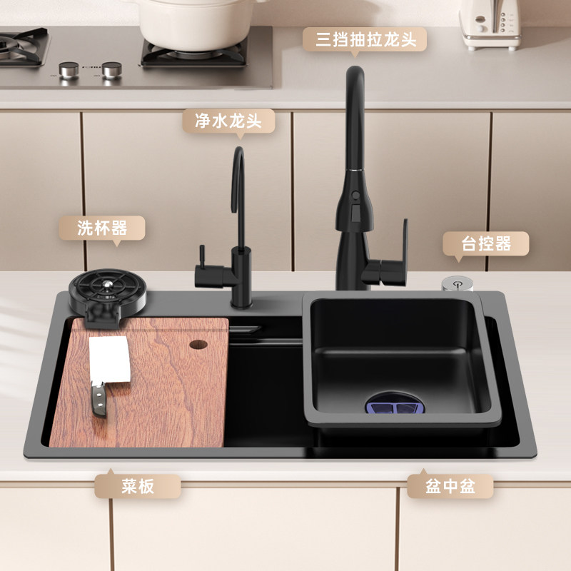 📚 东鹏304不锈钢水槽厨房双洗菜盆改瀑布大单槽纳米家用洗碗池台下