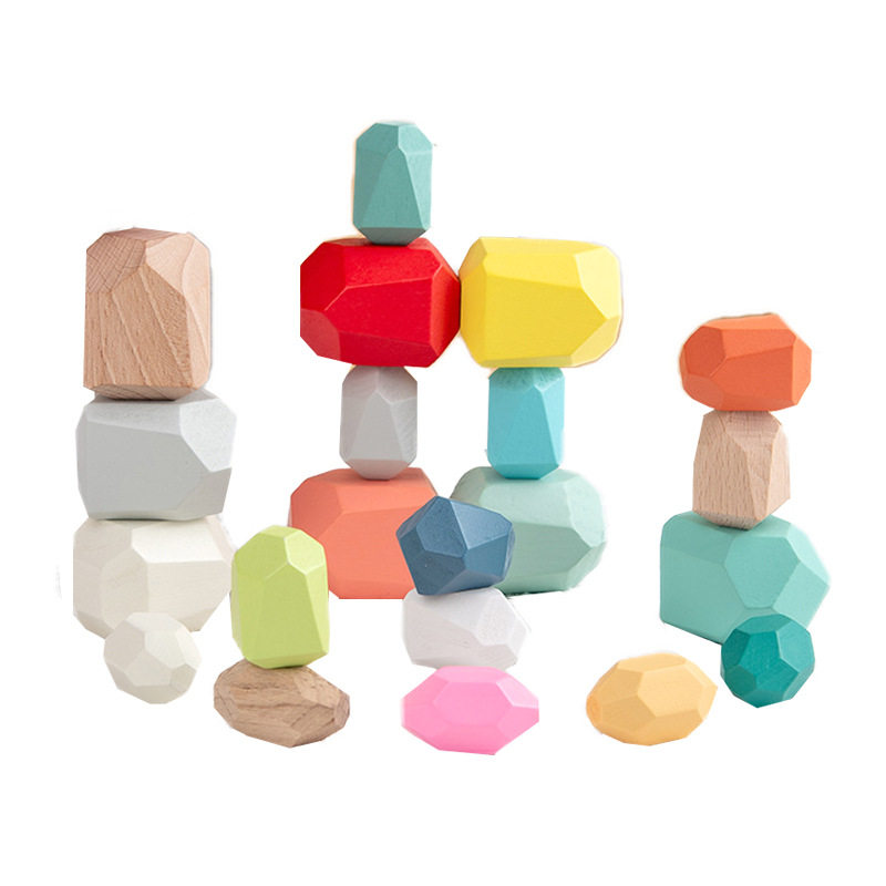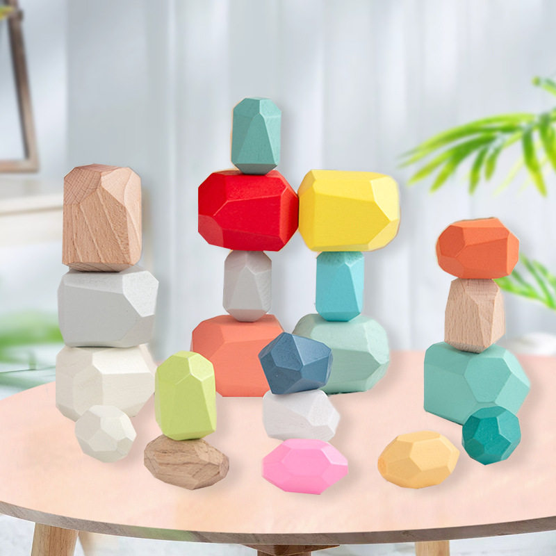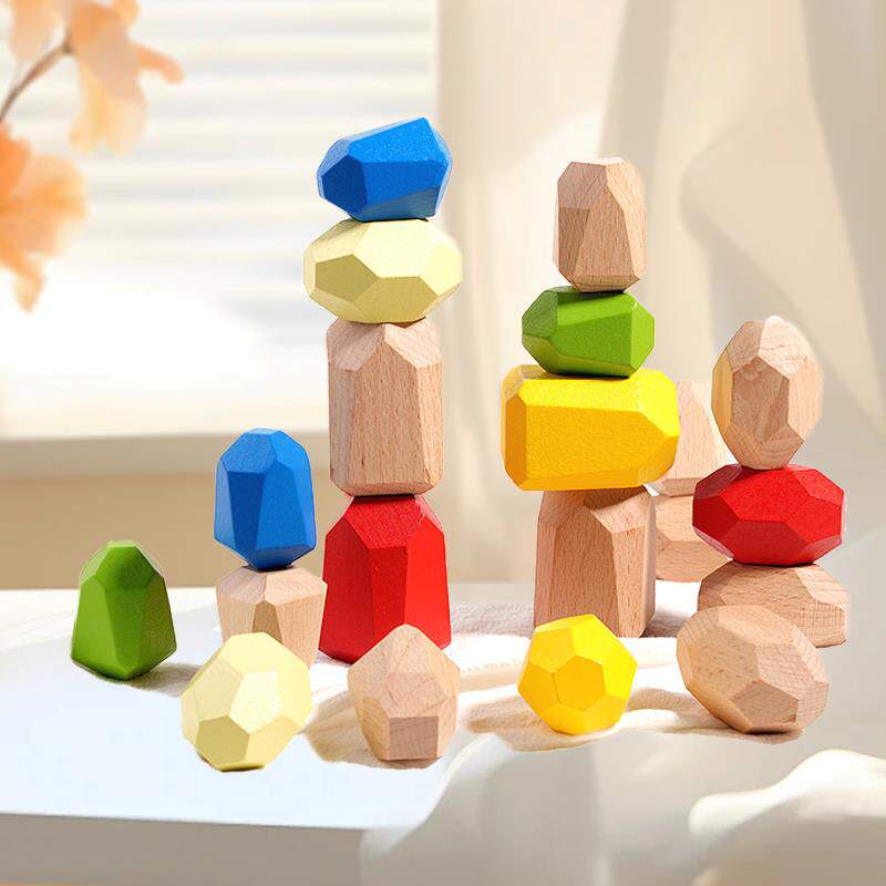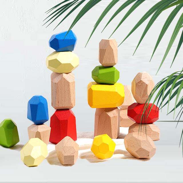📚 新款儿童玩具1-3岁木质彩色石头叠叠乐成品积木益智早教玩具