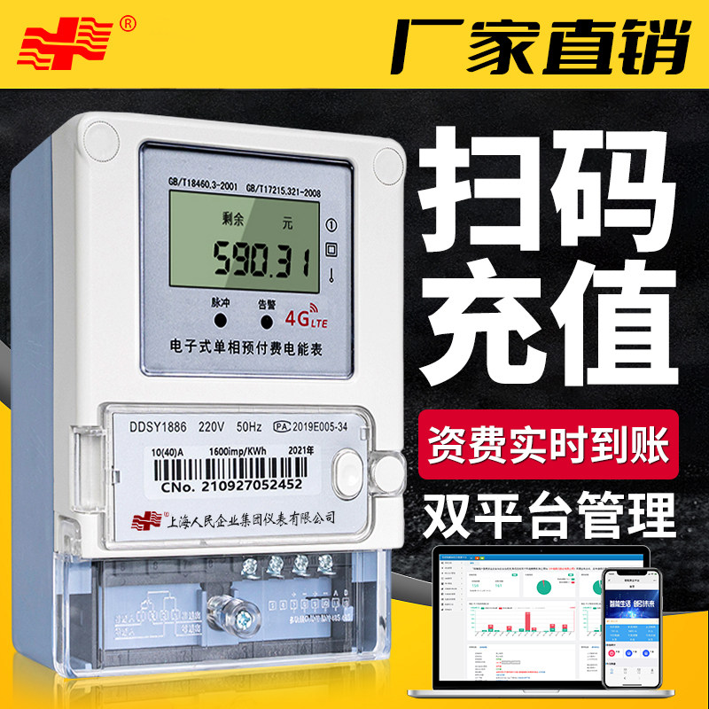 📚 上海人民单相4g扫码付费远程抄表三相充值预付费智能电表出租房