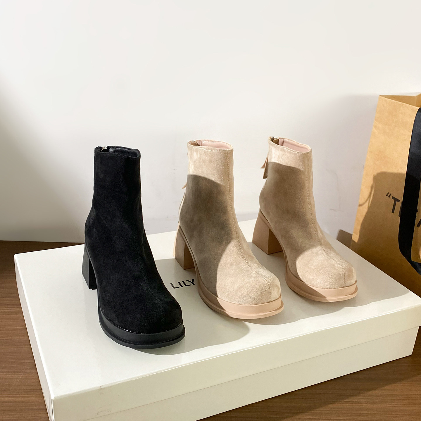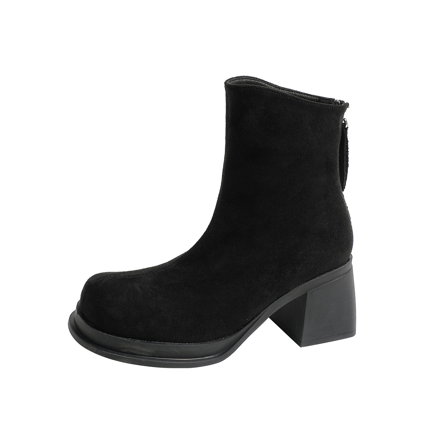 📚 高跟鞋女胖脚宽冬短靴女2025年小个子防水台腿粗胖mm大码女鞋加绒