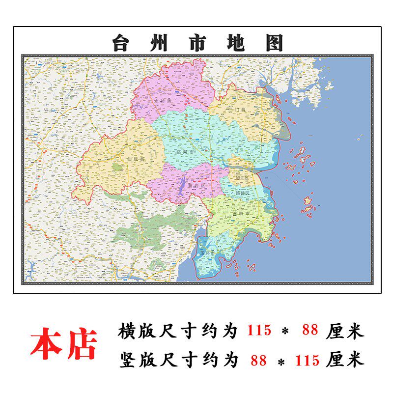 📚 台州市地图1.15m折叠家用高清办公室会议室书房新款墙贴装饰画