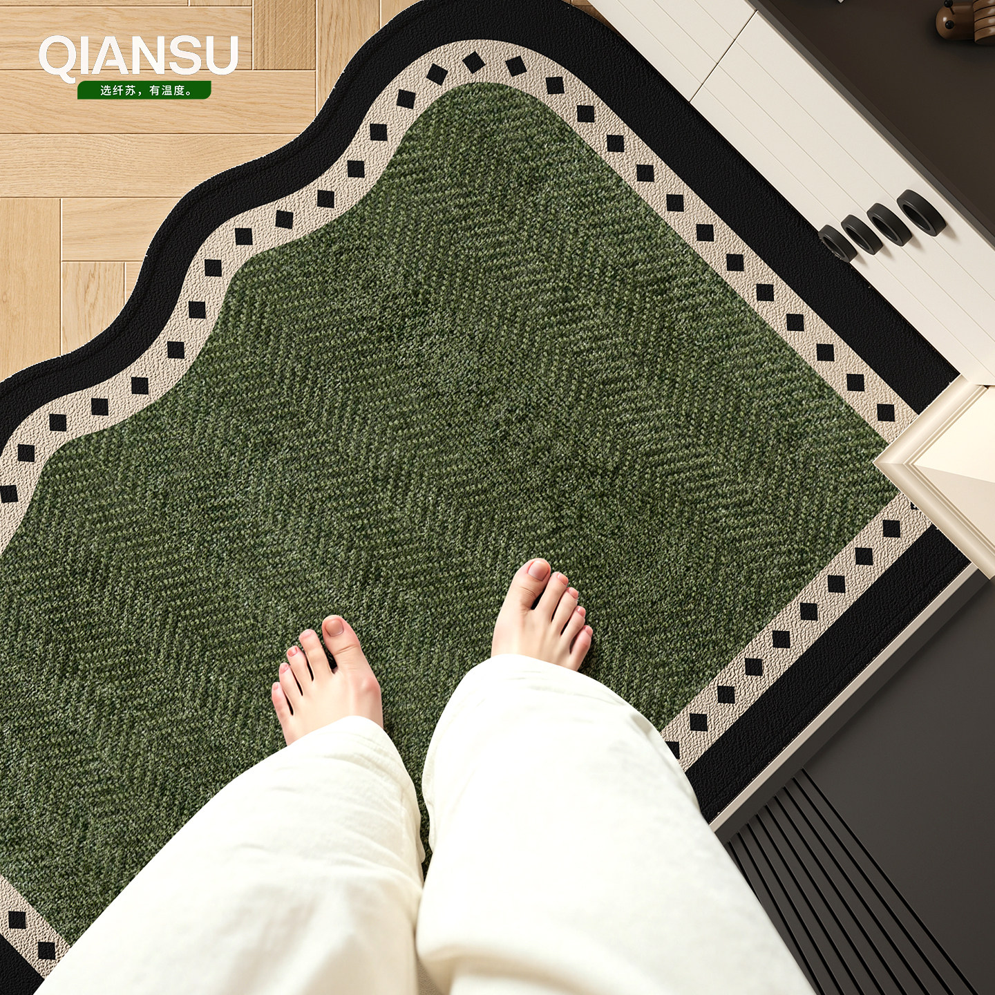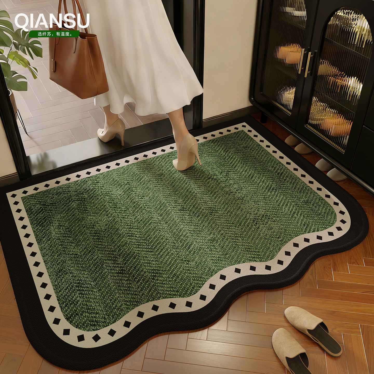 📚 中古风高级绿色入户门垫玄关地垫家用门口大门防滑免洗门垫可裁剪