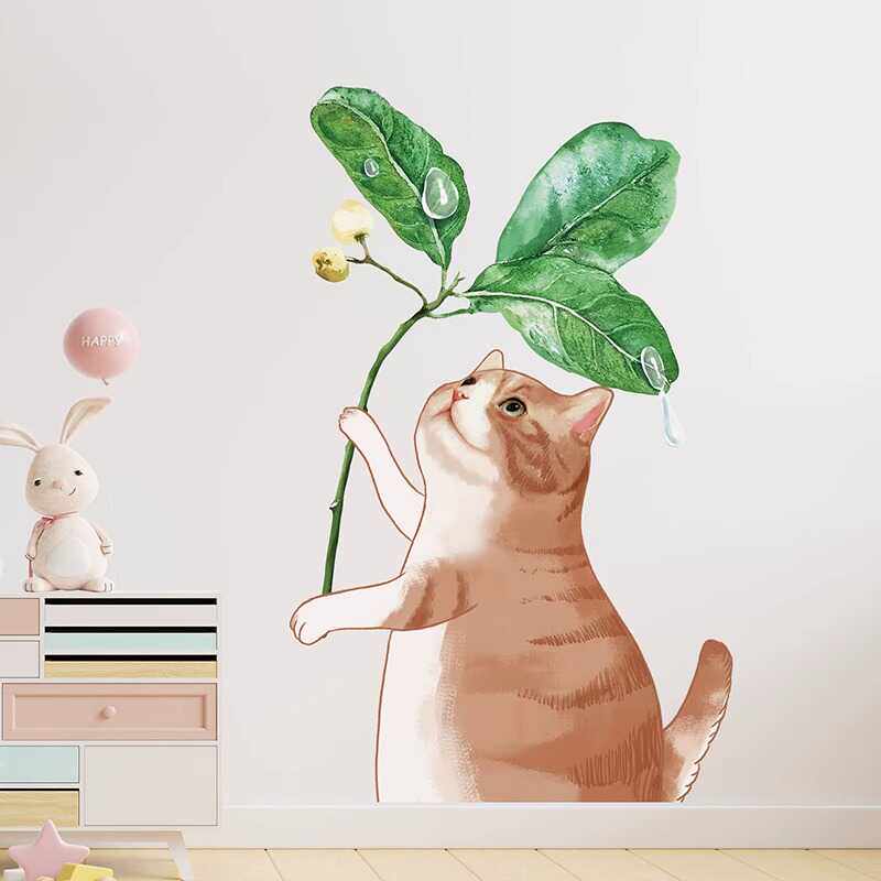 📚 可移除墙贴儿童房DIY装饰贴纸防水壁画可爱卡通猫腻治愈系贴画