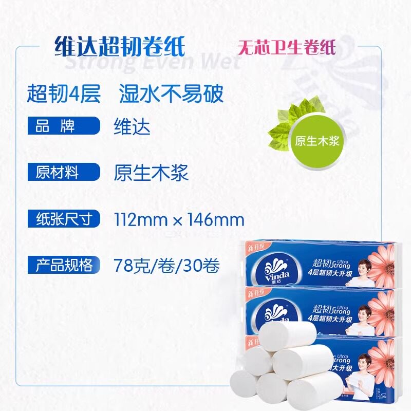 📚 维达卷纸无芯卷家用卫生纸四层大卷厕所专用纸巾厕纸手纸加厚升级