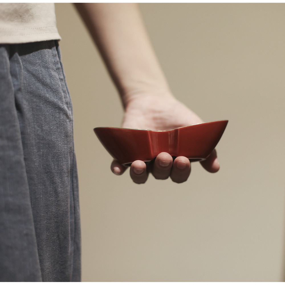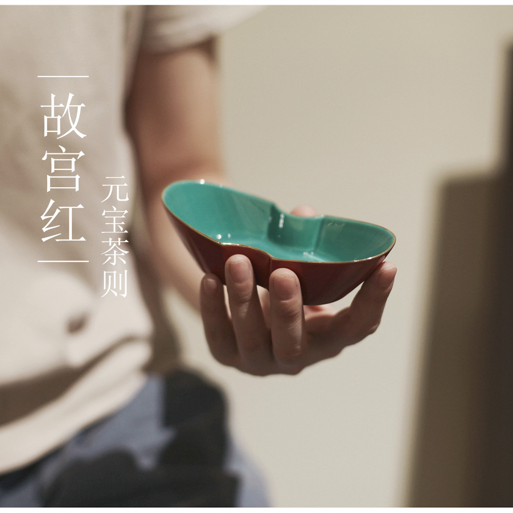 📚 |亦宋书院|《故宫红》元宝小茶则 内兰本金 红色陶瓷 茶道零配