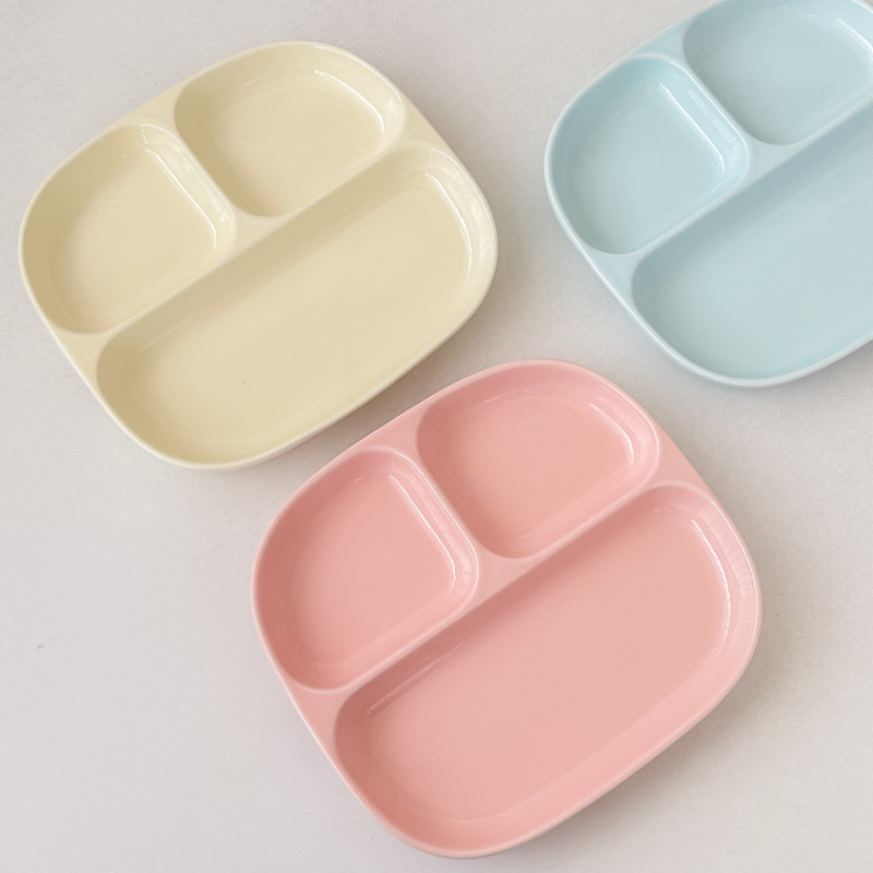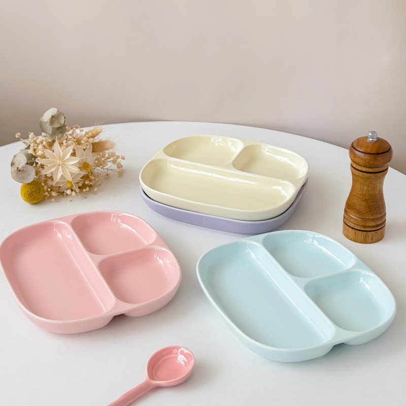 📚 奶油风分隔盘陶瓷分格餐盘一人食211减脂定量盘早餐盘子儿童餐盘
