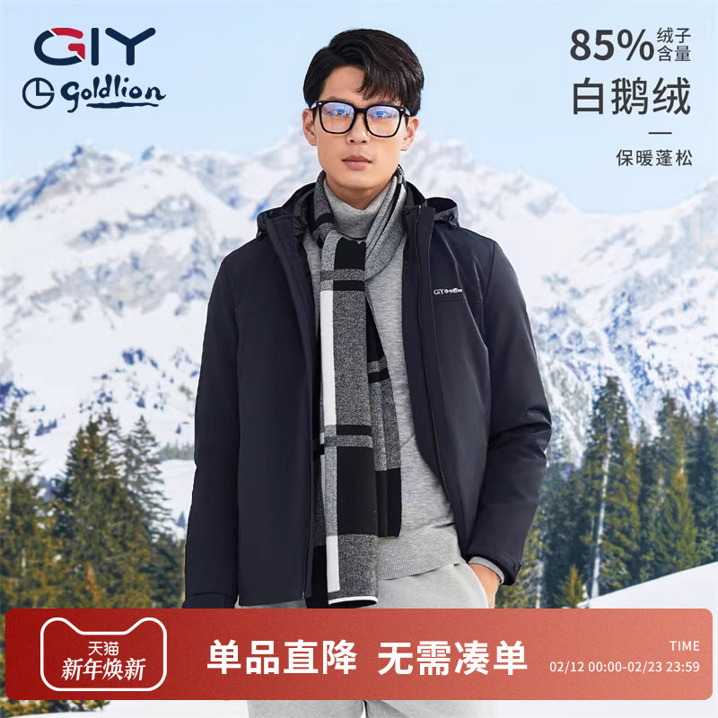📚 【三防鹅绒】金利来GY羽绒服男秋冬防护保暖加厚男士外套鹅绒85%