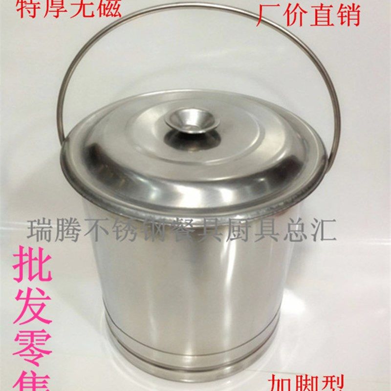 📚 不锈钢提桶带盖加厚斜提桶折叠提桶不锈钢水桶粥桶不锈钢锥形提桶