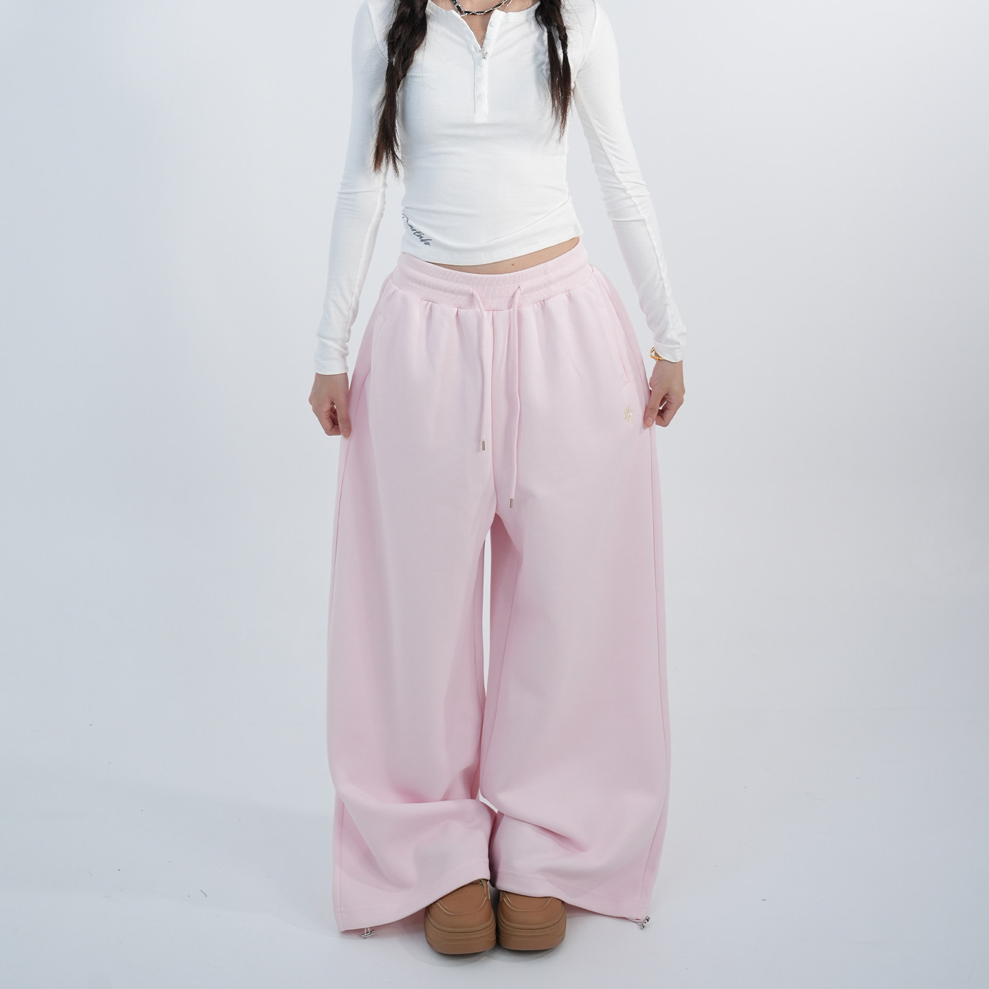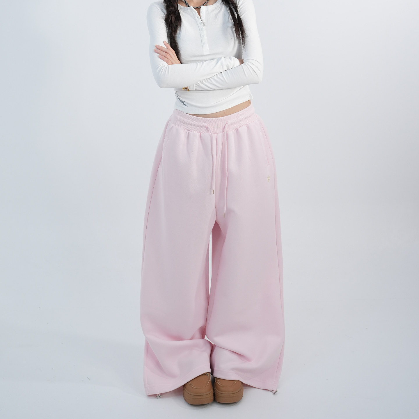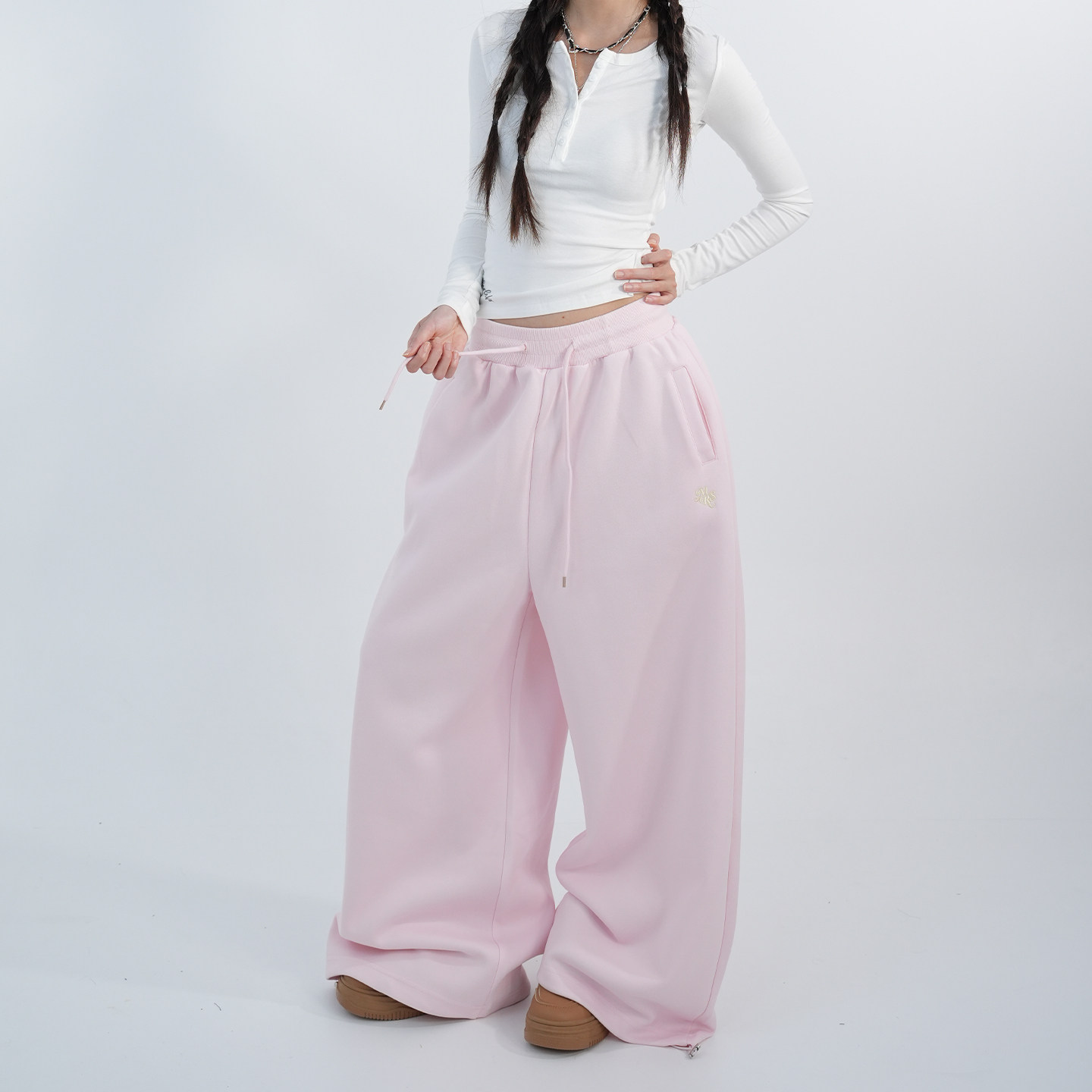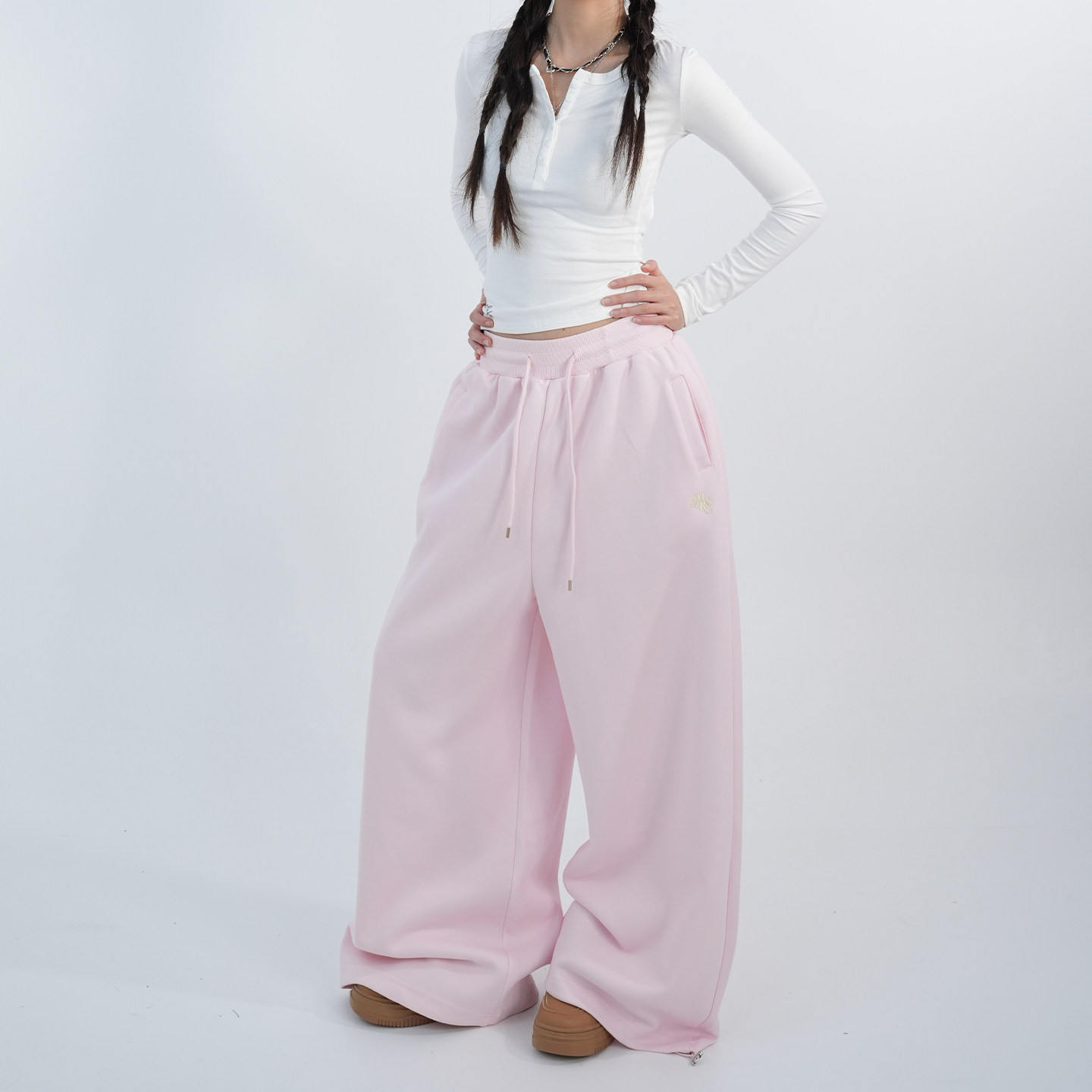 📚 大佬街舞潮牌美式粉色松紧卫裤松弛感慵懒休闲裤显瘦直筒8036