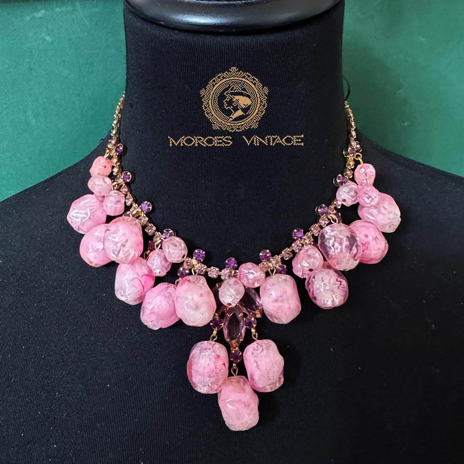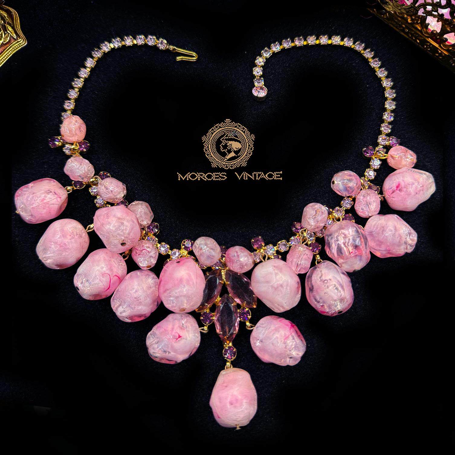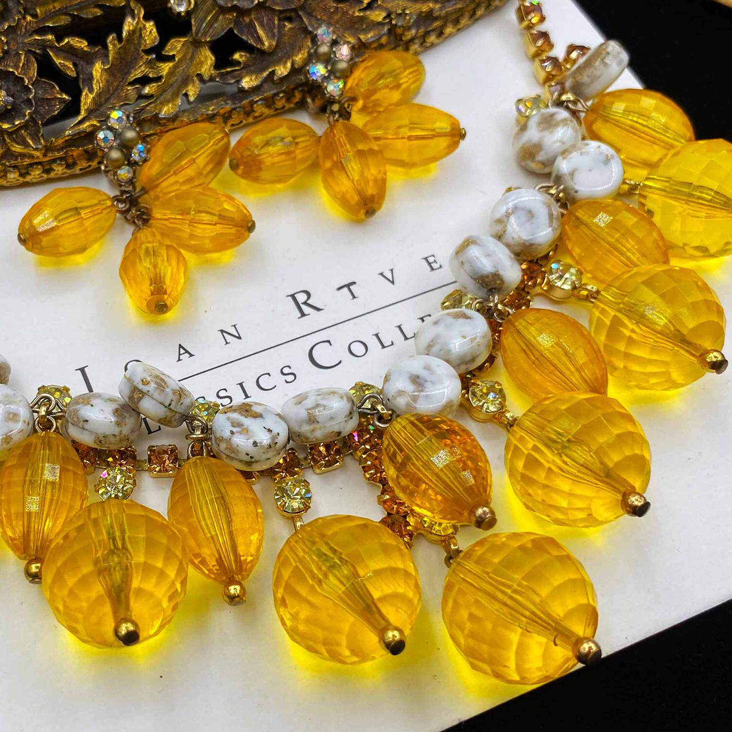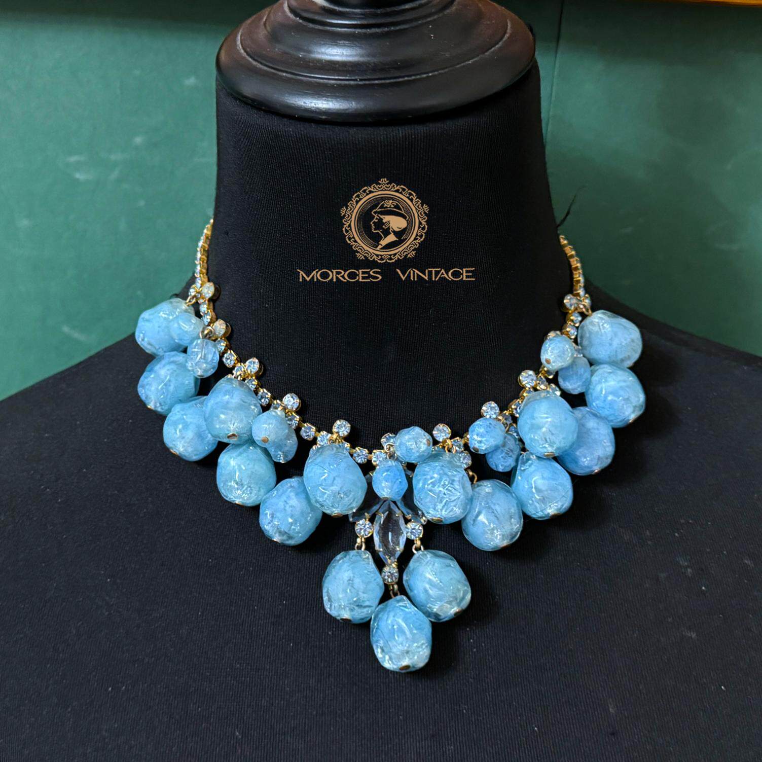 📚 Vintage-s中古首饰50年代稀有JULIANA书本款蓝黄粉色树脂珠项链