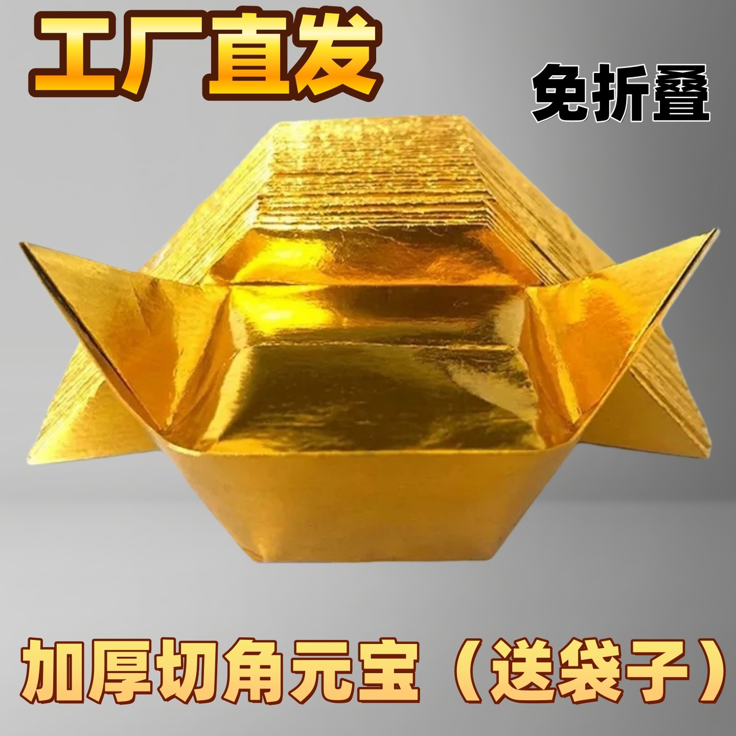 📚 切角金元宝纸半成品手工锡箔纸纸钱金银纸元宝半成品金色折纸用品