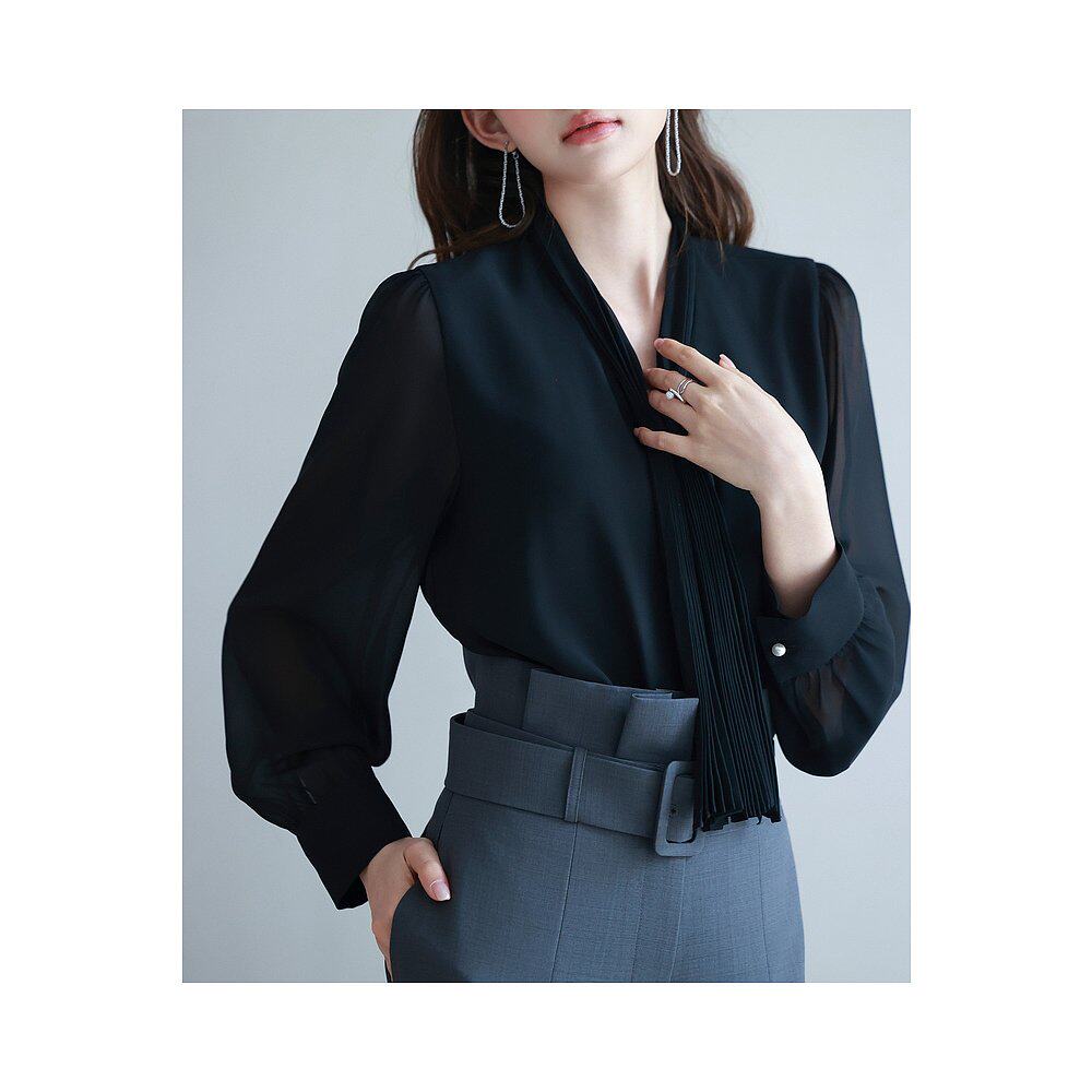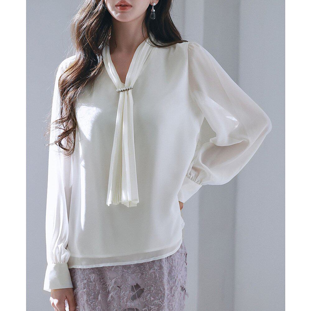 📚 1h可退 日本直邮SAISON DE PAPILLON 女士2way褶皱蝴蝶结雪纺衬衫