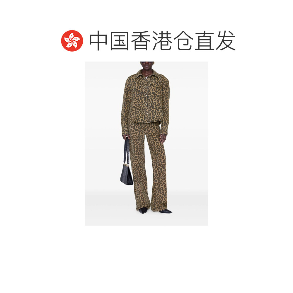 📚 1h可退 香港直邮ANINE BING 女士 PAXTON 黑色棕色豹纹衬衫 A0712