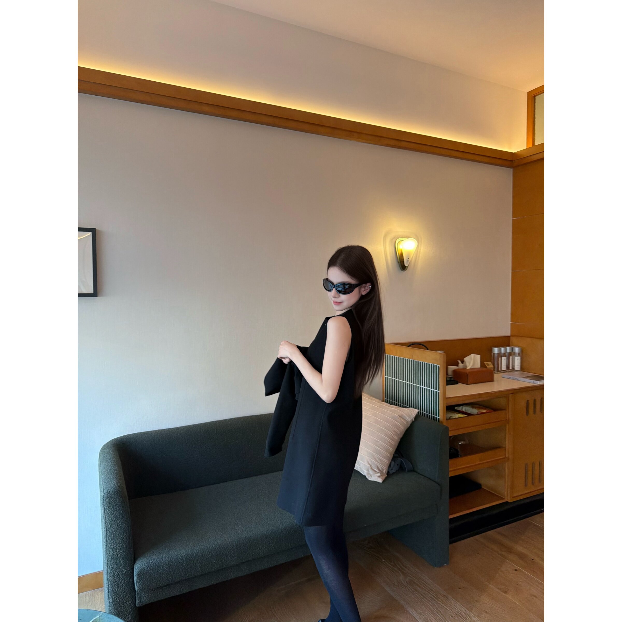 📚 superniniyy 黑金舞会&100%绵羊毛背心连衣裙毛呢短外套两件套装