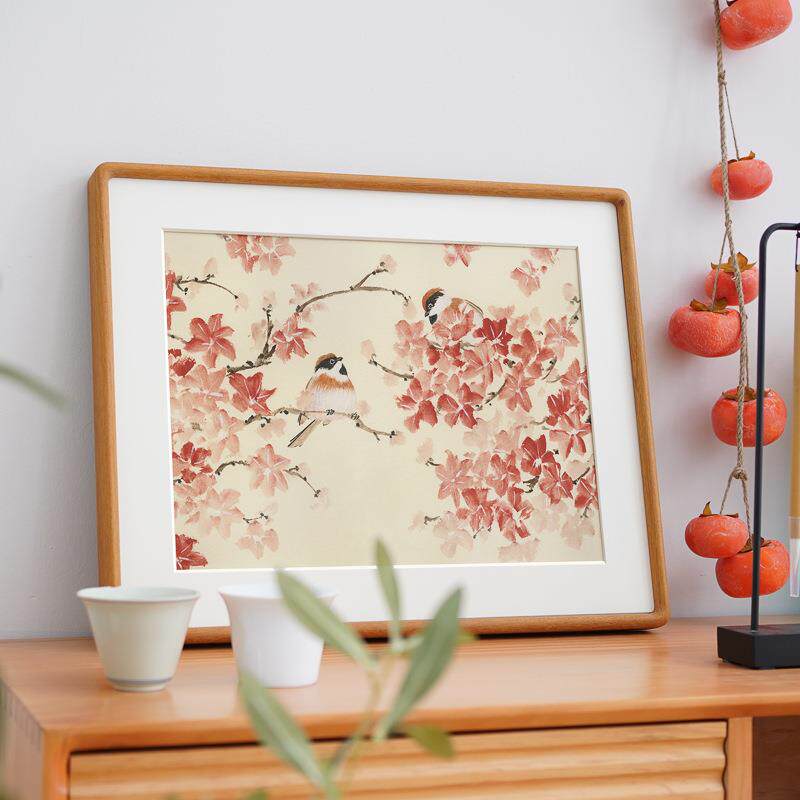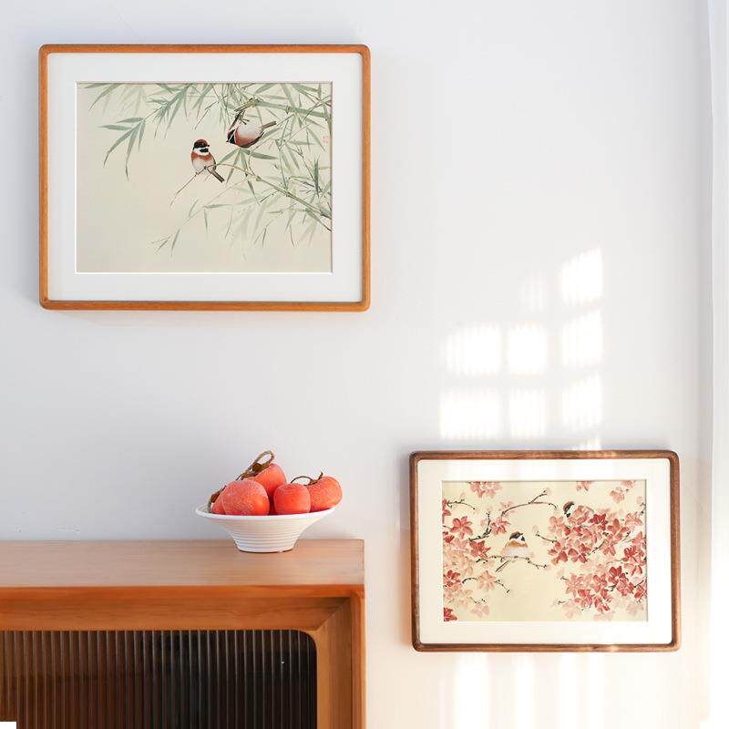 📚 花鸟画成双对床情侣爱情寓意沙好头发卧室原木风日式高级HXMHN024