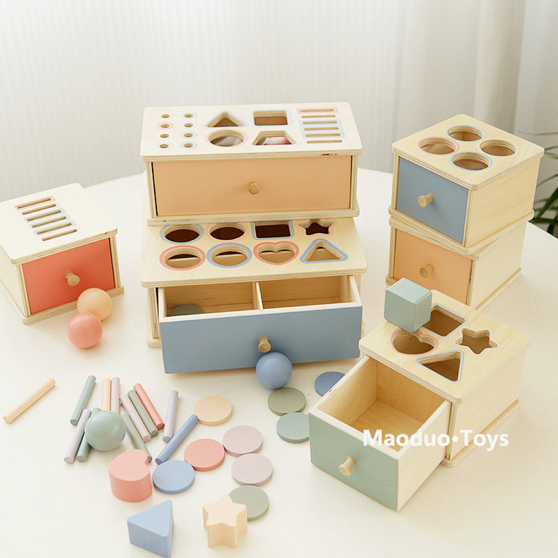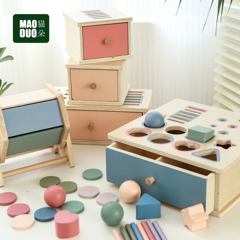 📚 蒙氏早教益智玩具一岁宝宝形状配对投币盒专注力训练教具积木MZL
