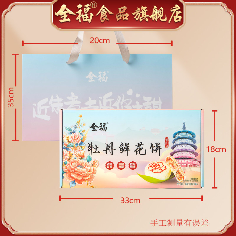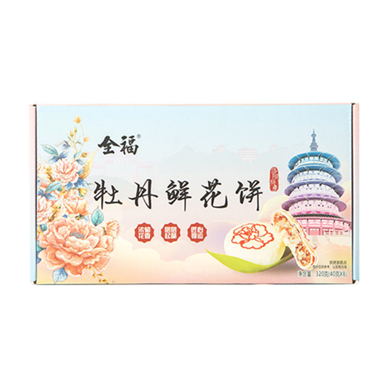 📚 洛阳特产全福8枚礼盒装牡丹鲜花饼 牡丹新做伴手礼好吃特色礼品袋
