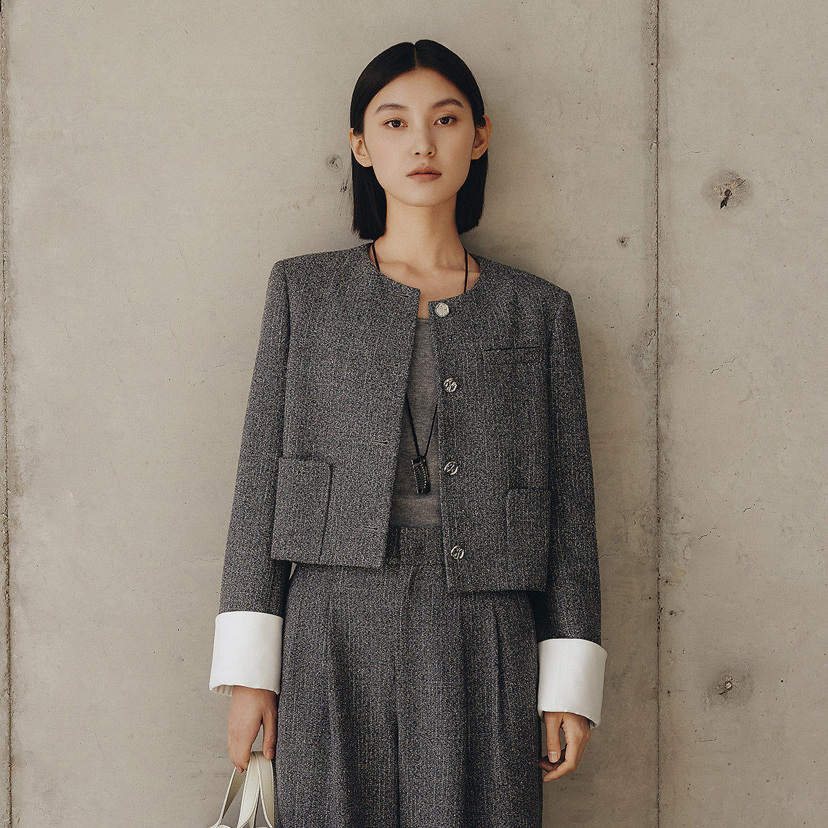 📚 Dekashell/迪卡轩2026春季轻熟风圆领短外套通勤撞色外套C211899