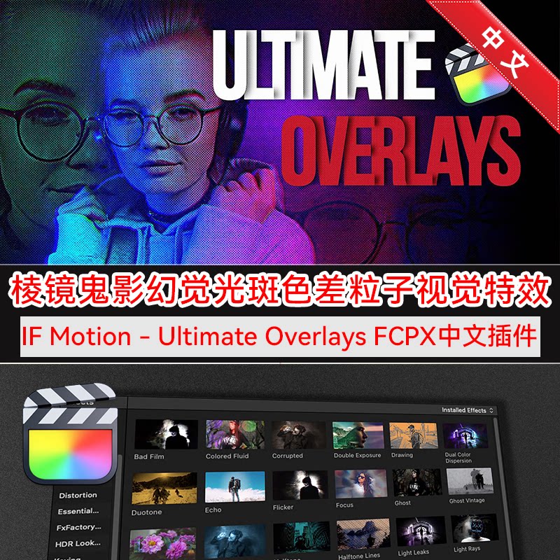 📚 FCPX中文插件 棱镜鬼影幻觉光斑色差粒子特效 Ultimate Overlays