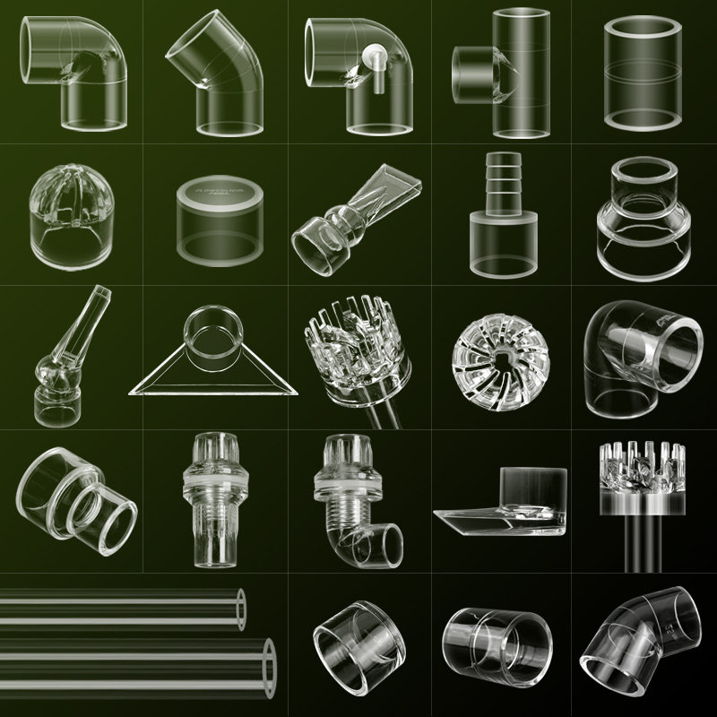 📚 鱼缸透明水管亚克力管件弯头三通接头水族PVC管子DIY配件底滤上滤