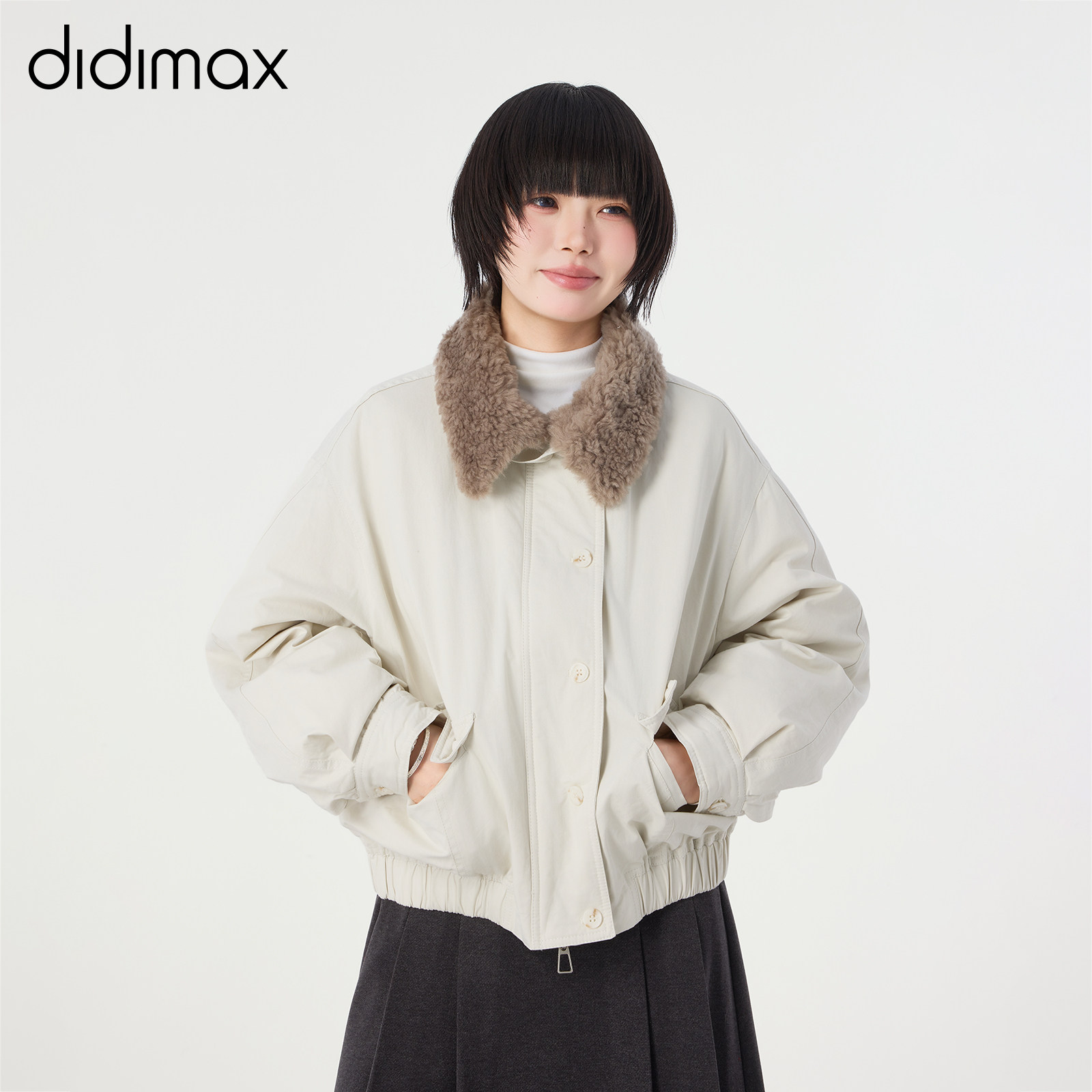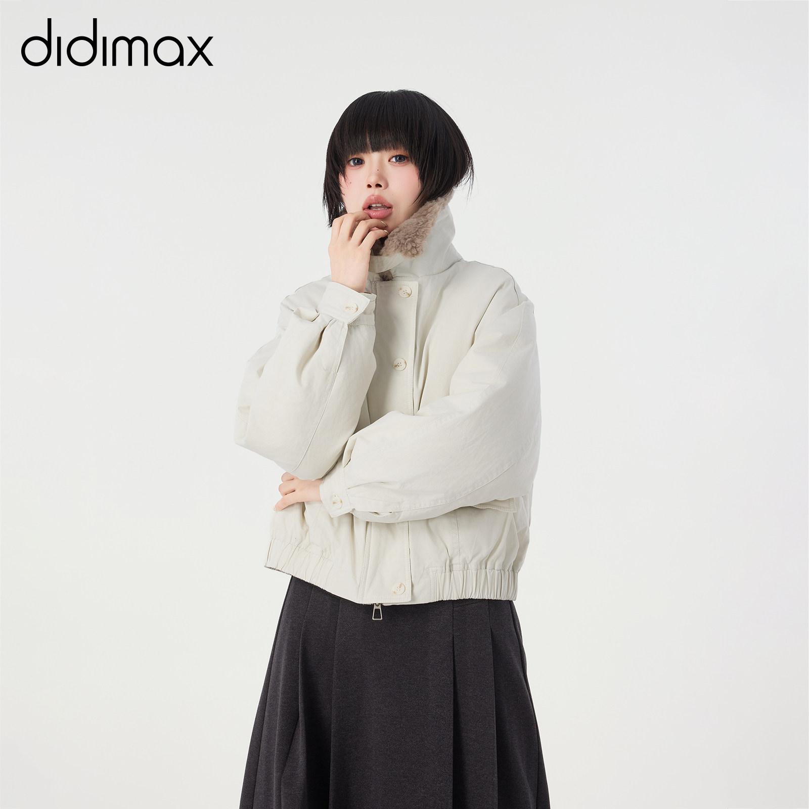 📚 didimax冬季新款米白色羊毛翻领短款羽绒服 保暖休闲外套 W36878