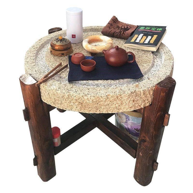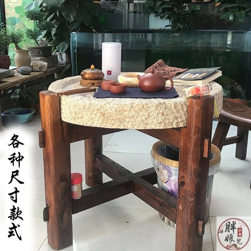 📚 石磨茶盘茶台桌子老磨盘旧石器茶托茶具木架磨片石桌石凳组合摆件