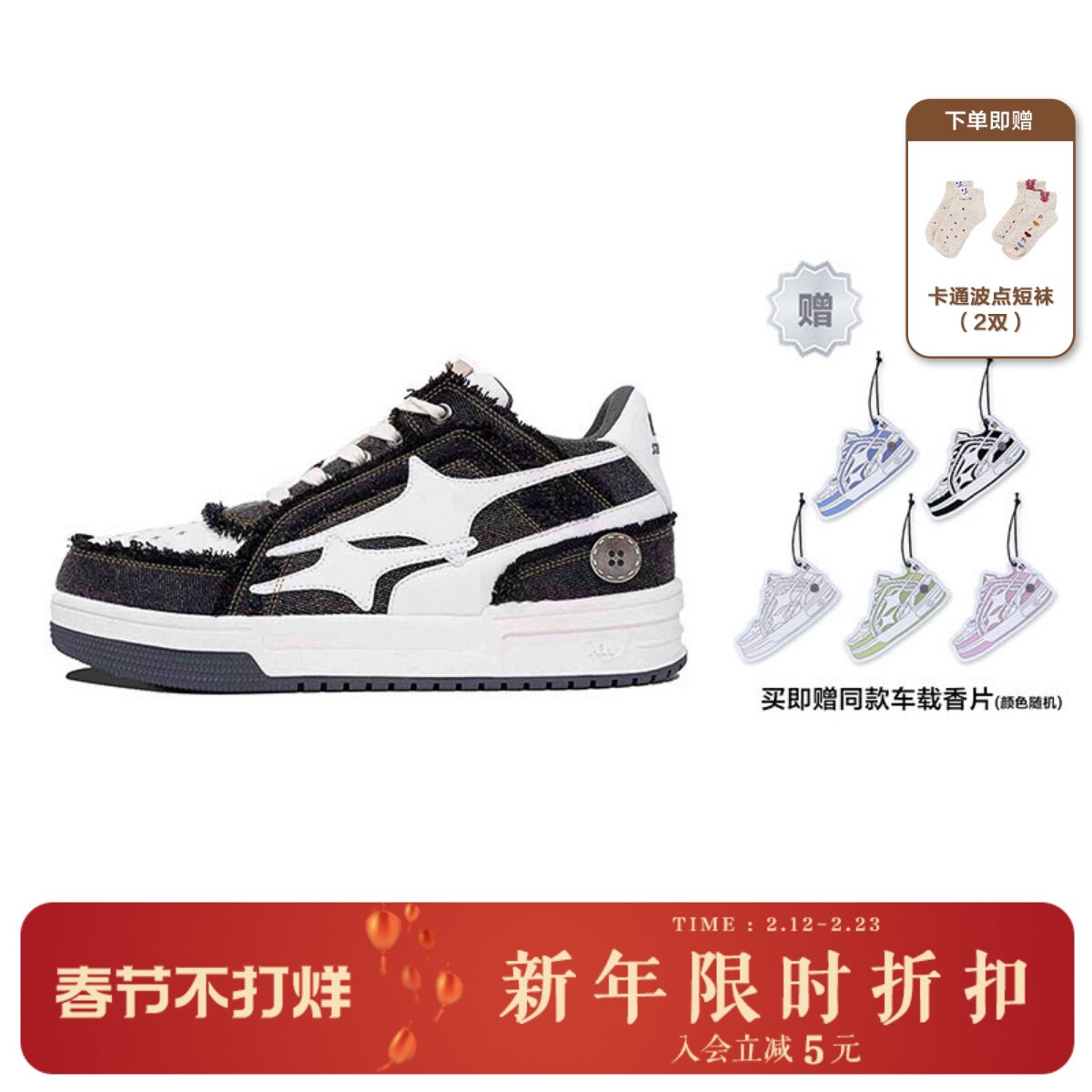 📚 KILLWINNER Noah's ark 牛仔破碎流星 潮牌低帮板鞋子 黑色