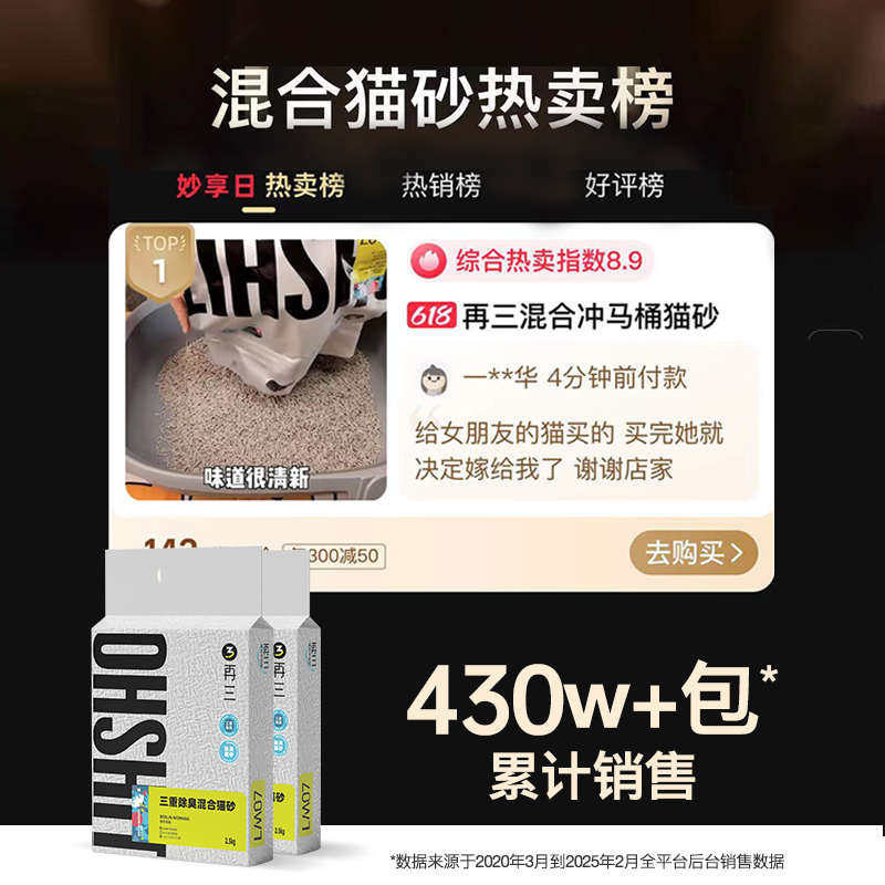 📚 再三三重混合猫砂除臭豆腐猫砂膨润土可冲厕所猫砂2.5kg*16包