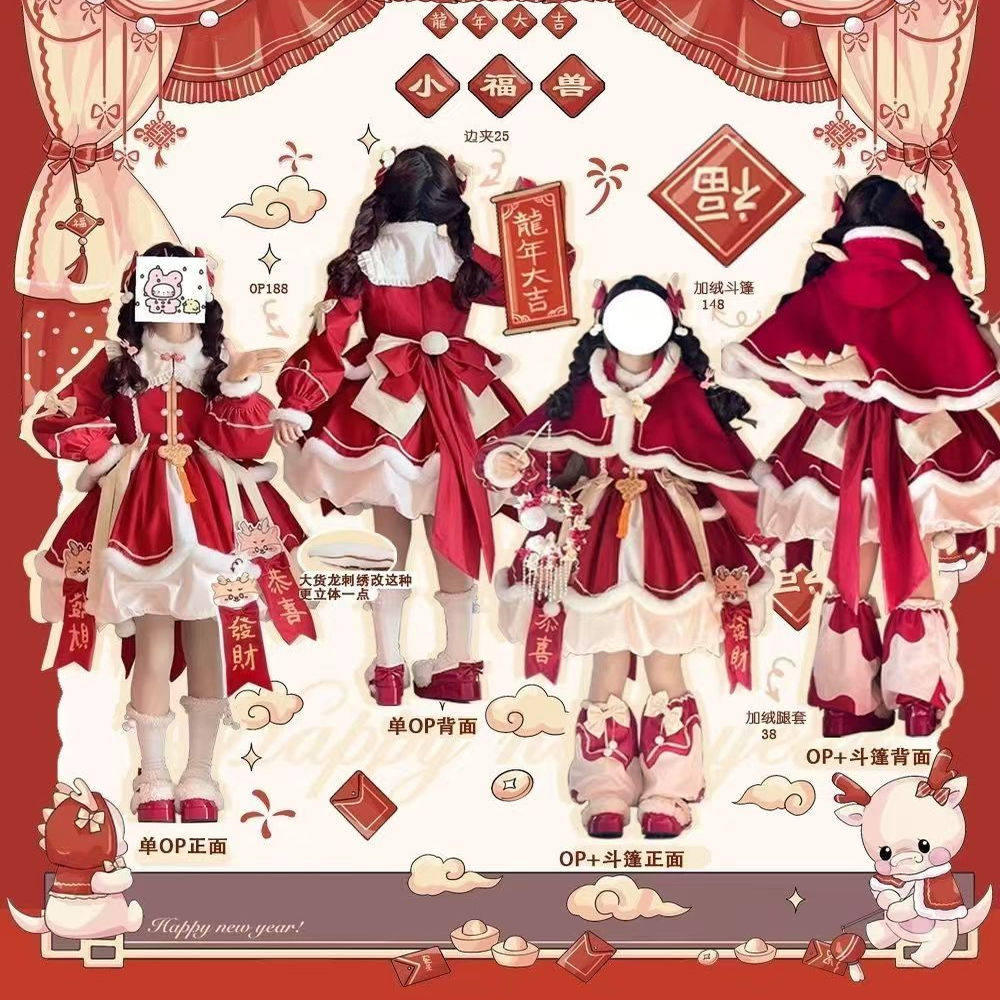 📚 300斤特大码洛丽塔女装新年款可爱小软妹lo裙红色长袖连衣裙套装