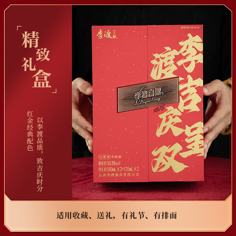 📚 李渡高粱1975礼盒整箱 吉庆呈双 双支礼盒 加赠小酒 过节送礼精选