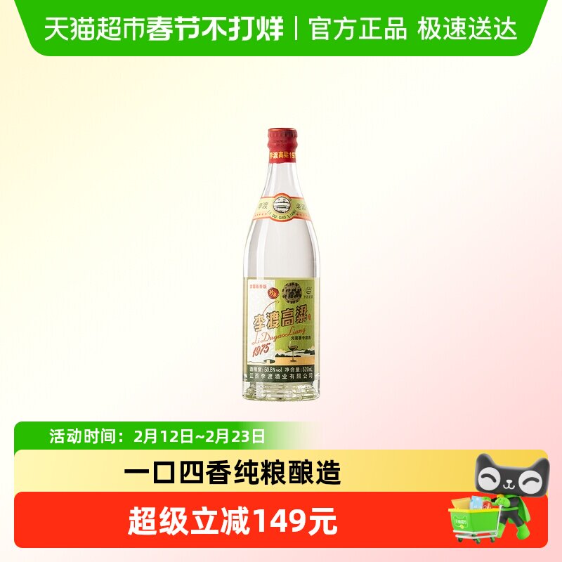 📚 李渡高粱1975元窖香自饮宴请520ML高度光瓶50.8度纯粮白酒 单支