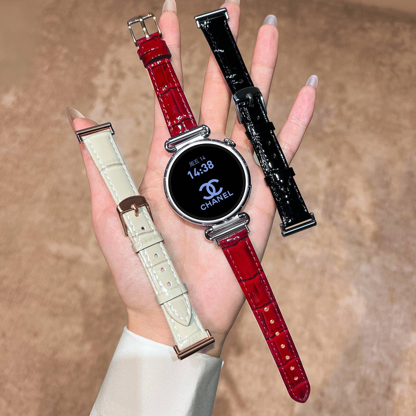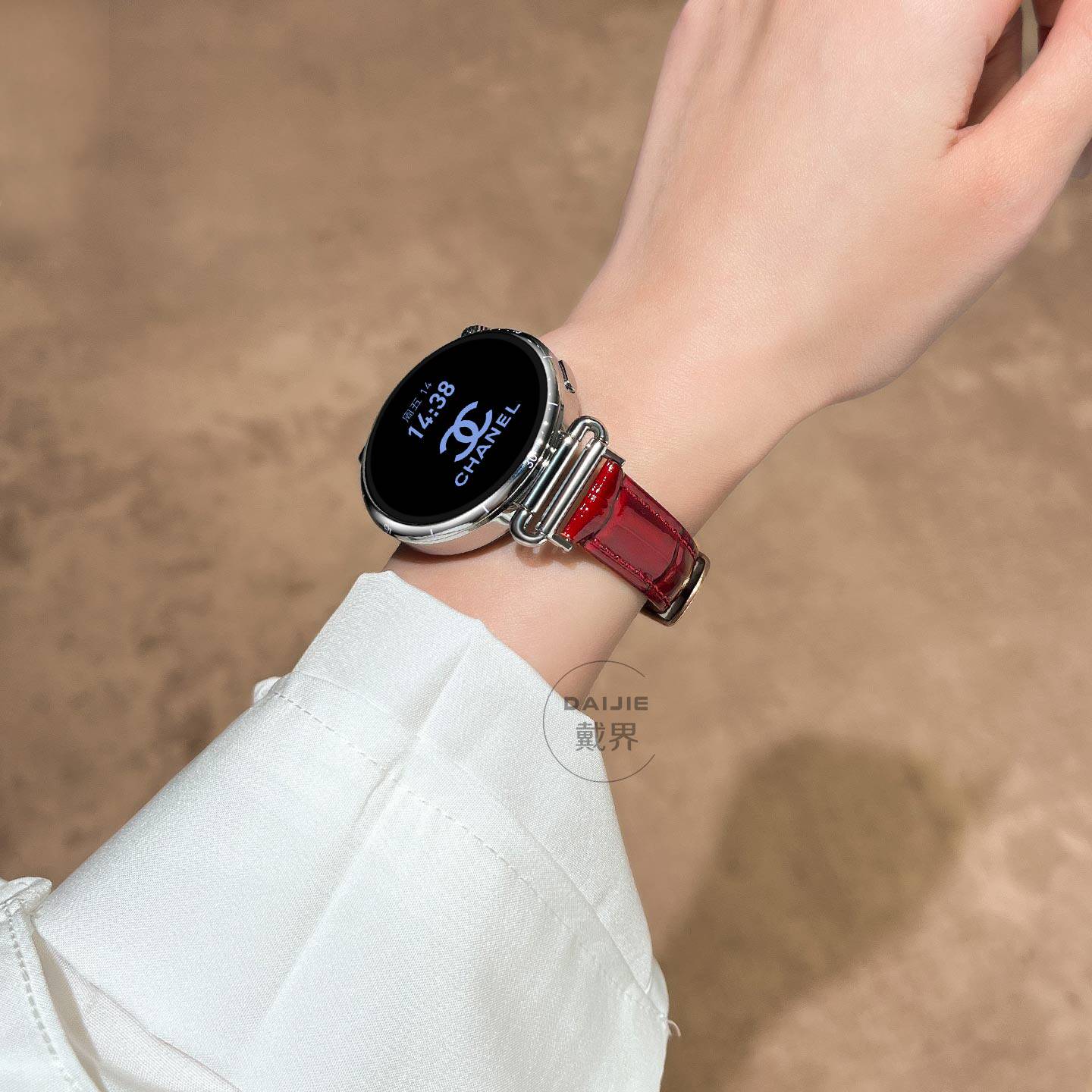 📚 适用华为gt5表带新款gt6手表表带女款红色真皮竹节纹gt5pro秋冬皮质表链gt4智能腕带watch5高级感新年红复古