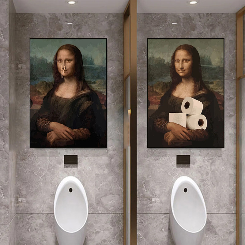 📚 Funny Bathroom Toilet Decoration Painting Mona Lisa Poster