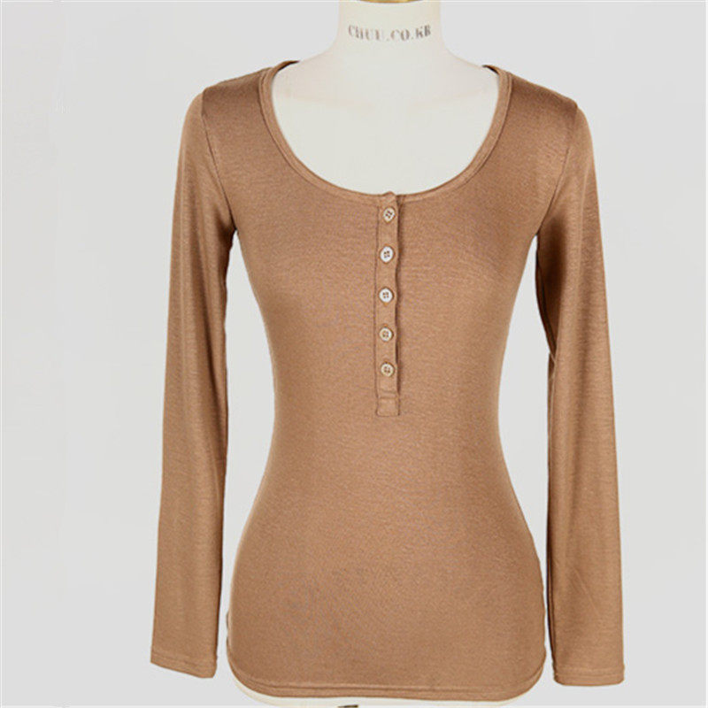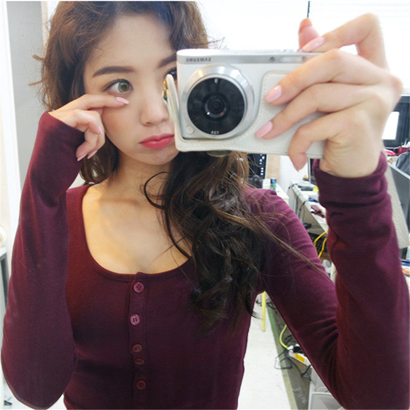 📚 韩国女装2022秋冬新款百搭修身显瘦半开纽扣性感长袖T恤女打底衫