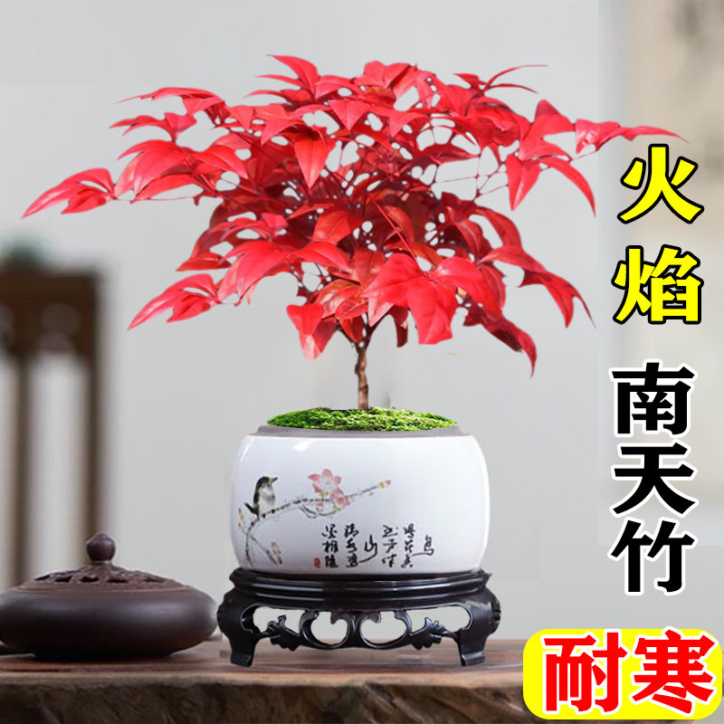 📚 火焰南天竹盆栽红叶小盆景耐寒植物室内桌面好养观叶花卉四季绿植