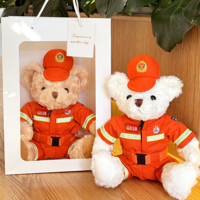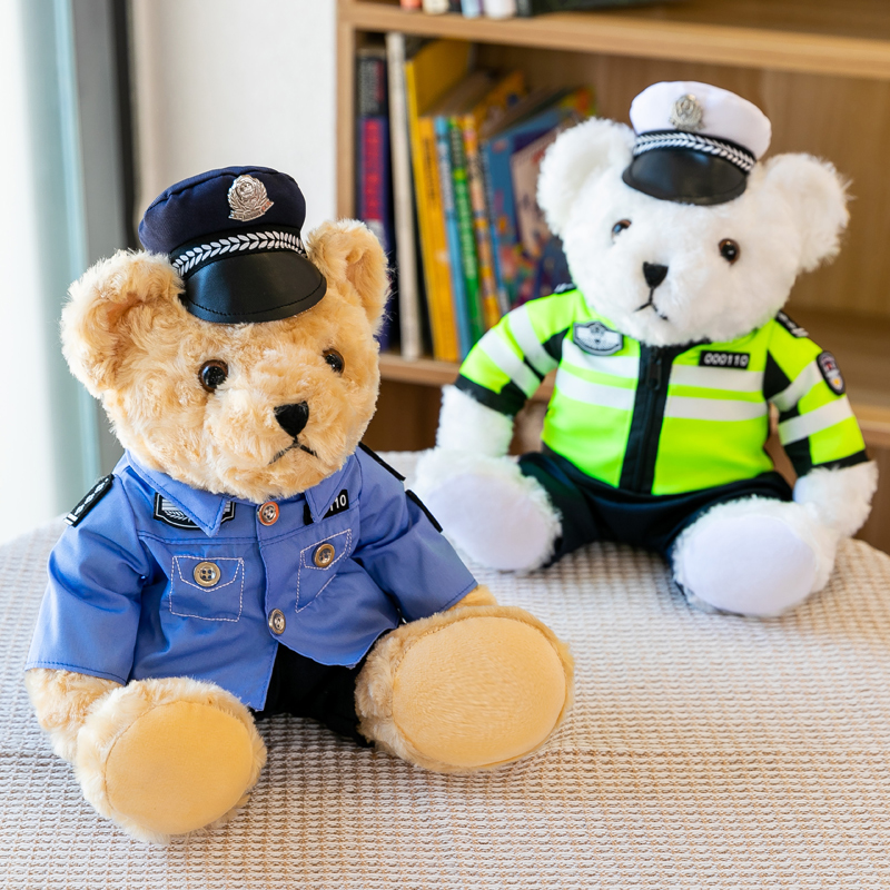 📚 网红警察小熊铁骑毛绒玩具交警熊玩偶消防警熊警官送女友生日礼物