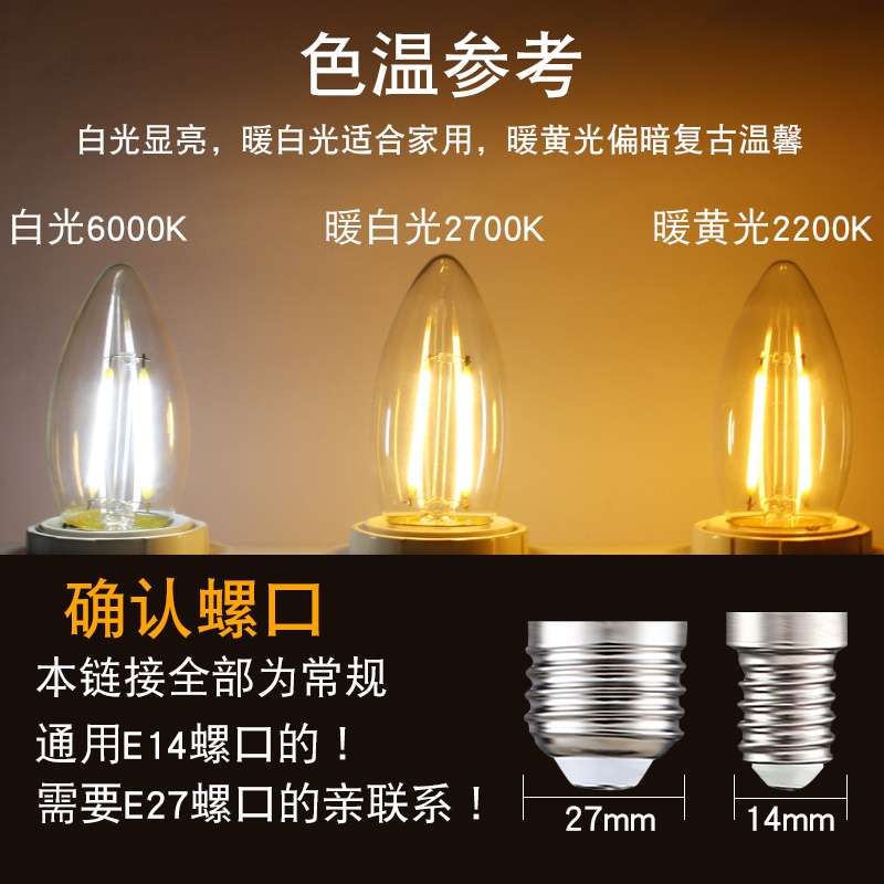 🎁这款灯具叫做“E14小螺口小头LED爱迪生蜡烛灯泡水晶灯白光拉尾尖泡C35复古超亮”,简直是家居美学的点睛之笔。它的设计简约而不简单,细节之处流露出复古与超亮的光芒。