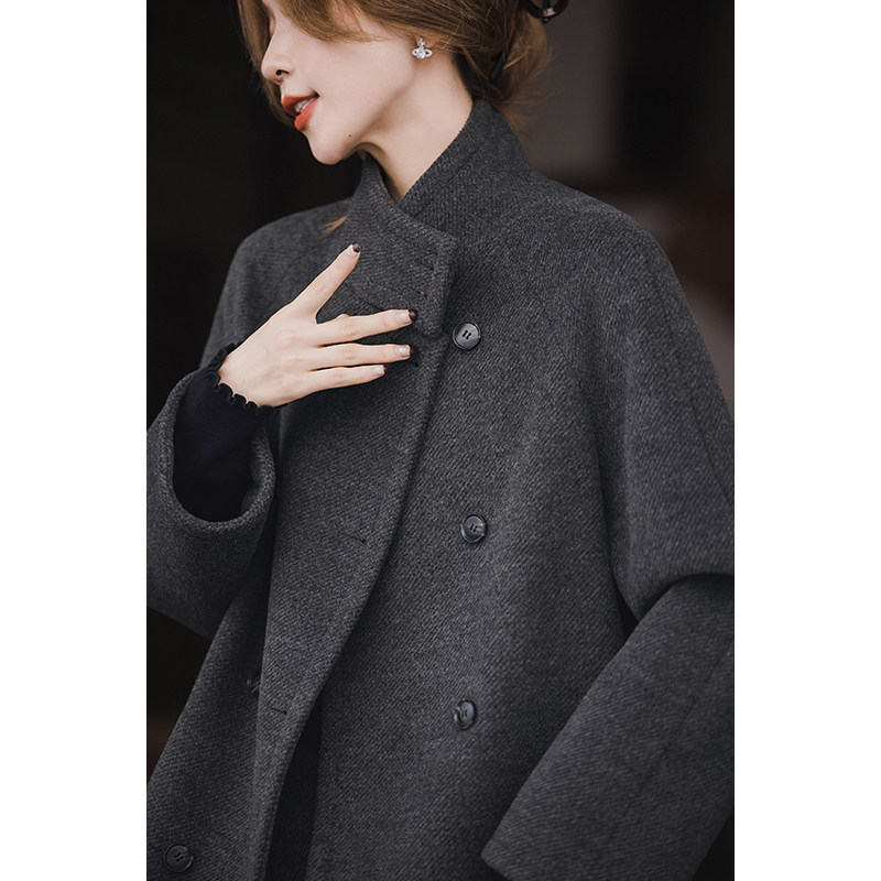 📚 小谷粒圆舞曲大衣 立领毛呢外套女秋冬新款经典百搭双排扣上衣