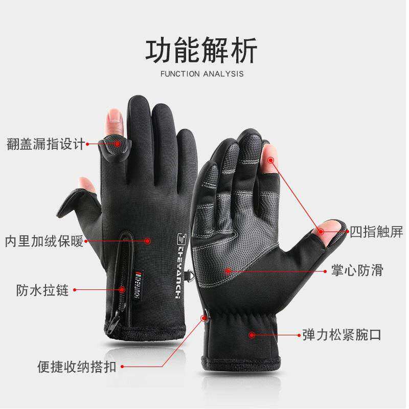 📚 摄影师专用手套冬季防风保暖加绒加厚防滑漏二指户外运动触屏防水